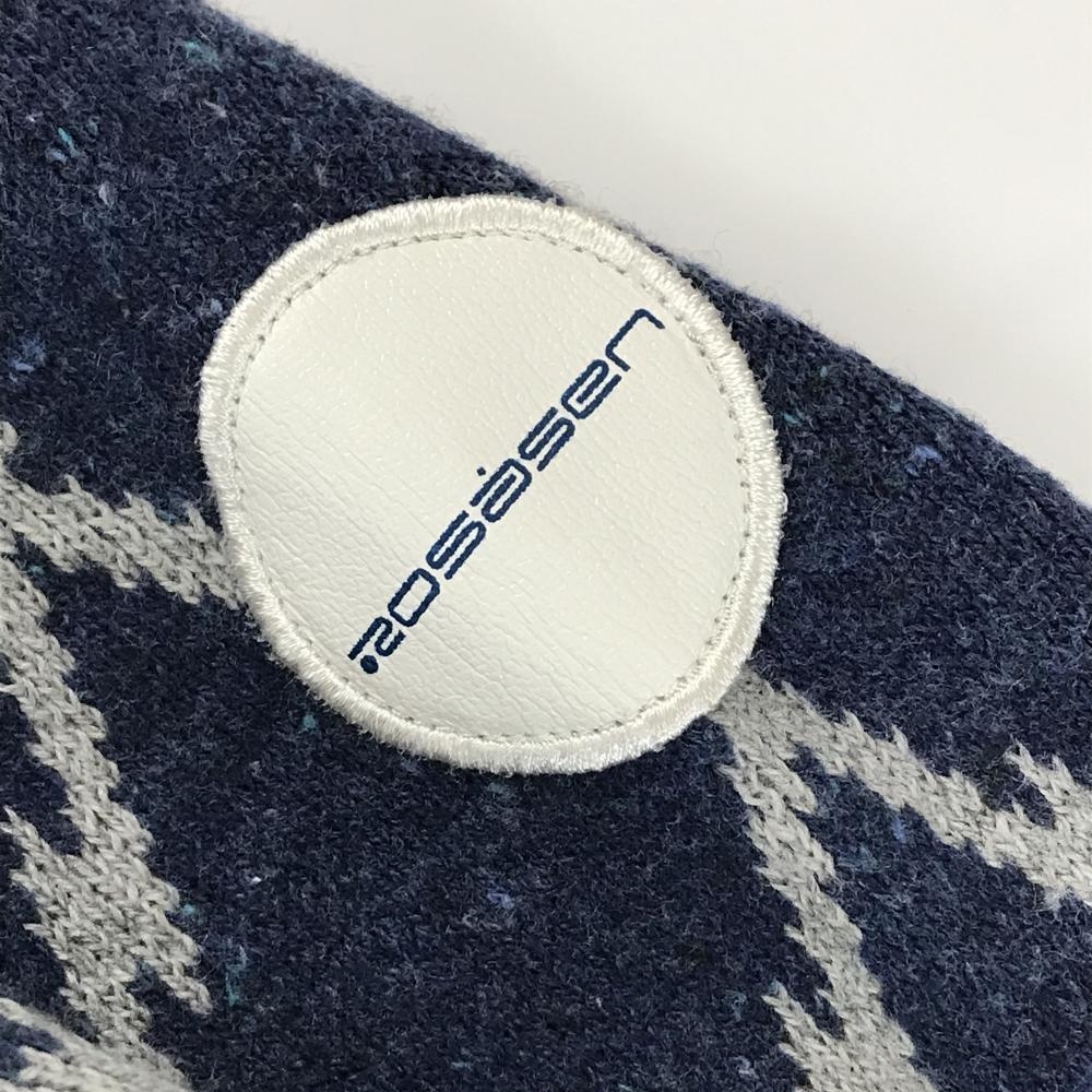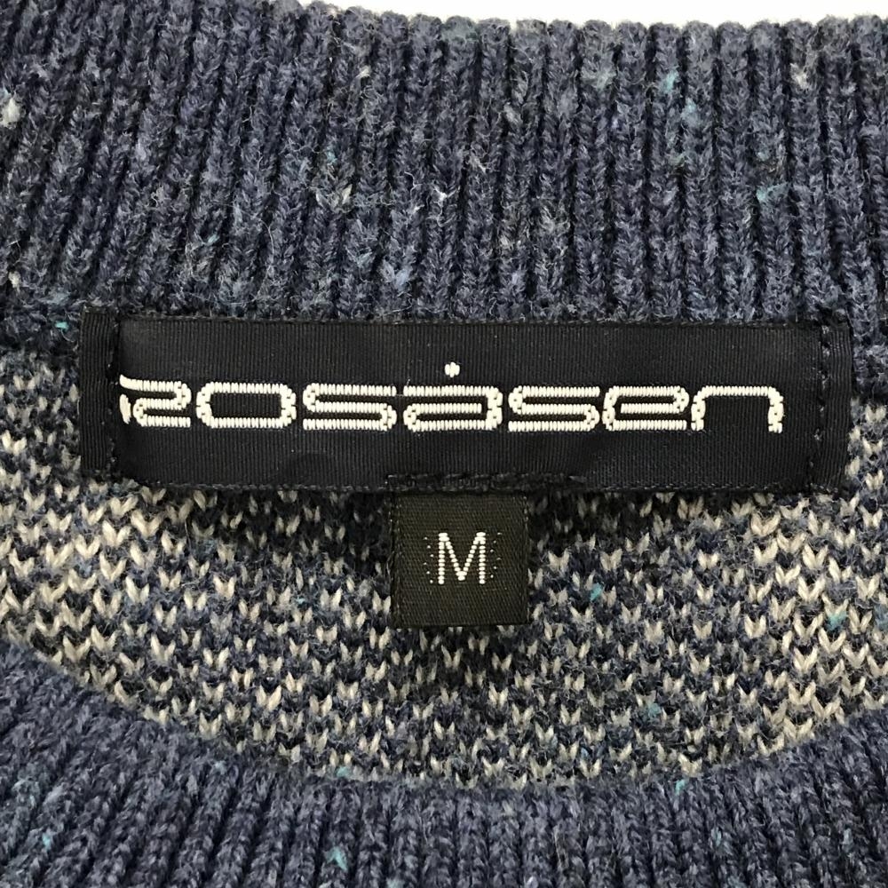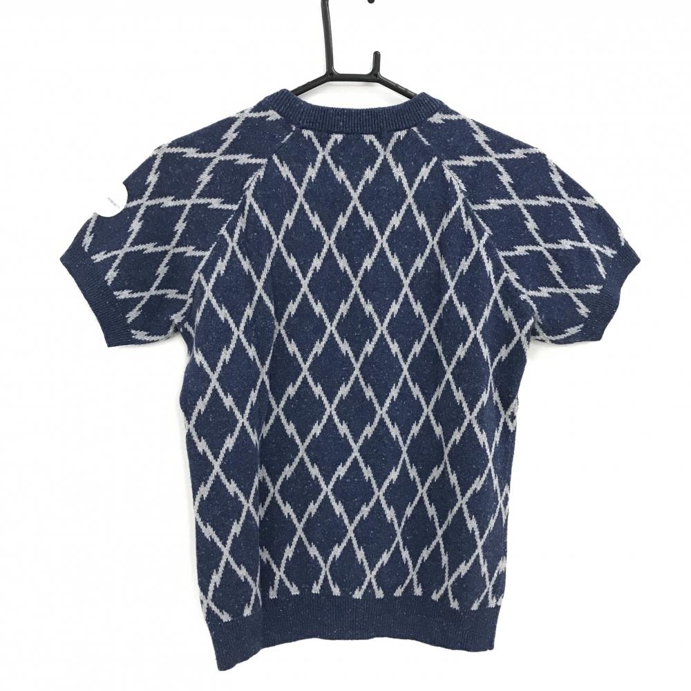【美品】ロサーセン 半袖セーター ネイビー×ライトグレー ダイヤ柄風 カシミヤ混 ニット レディース M ゴルフウェア Rosasen