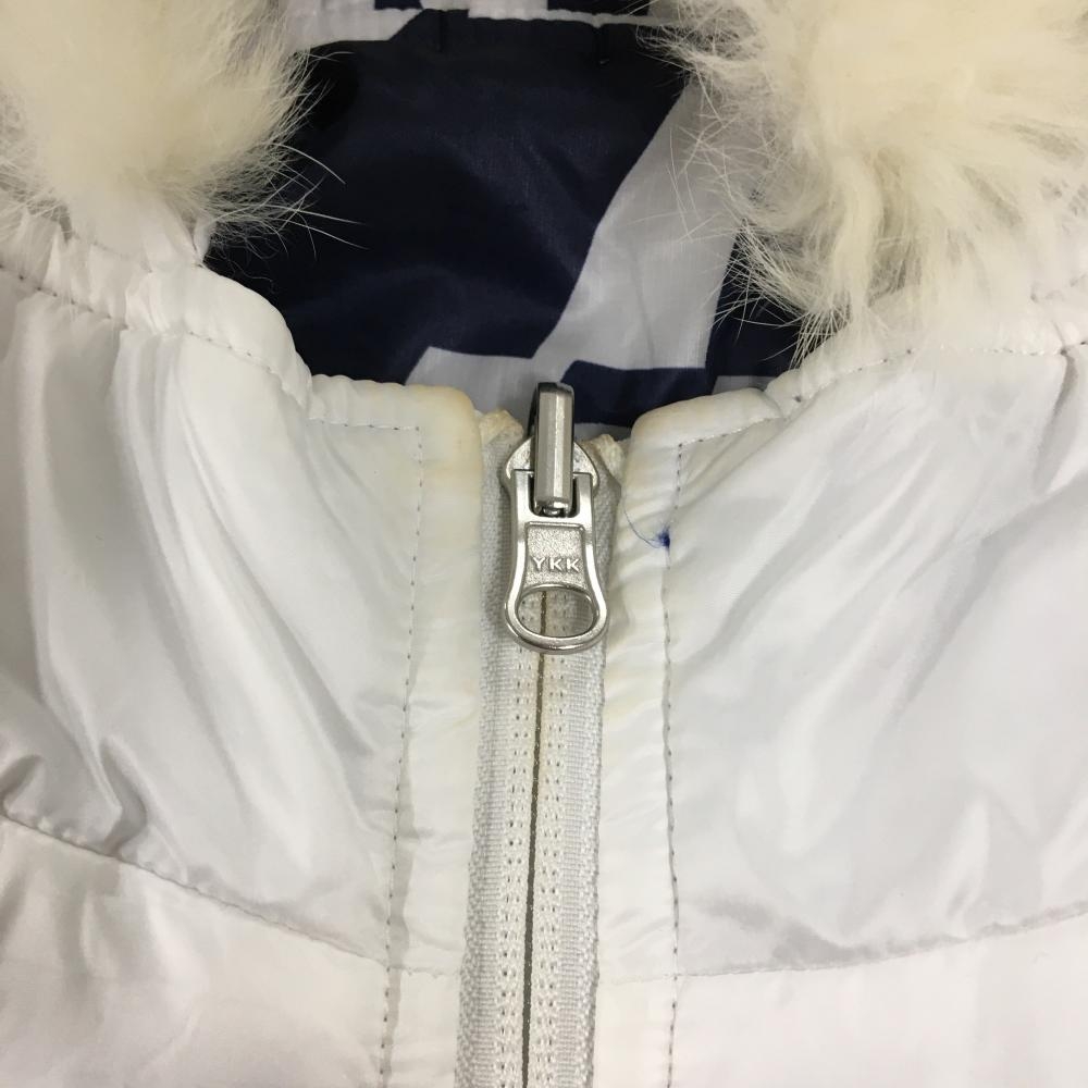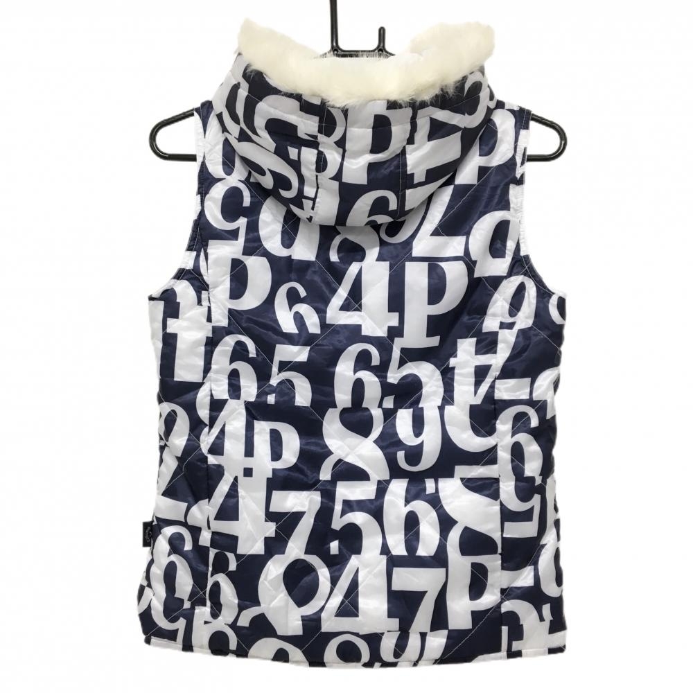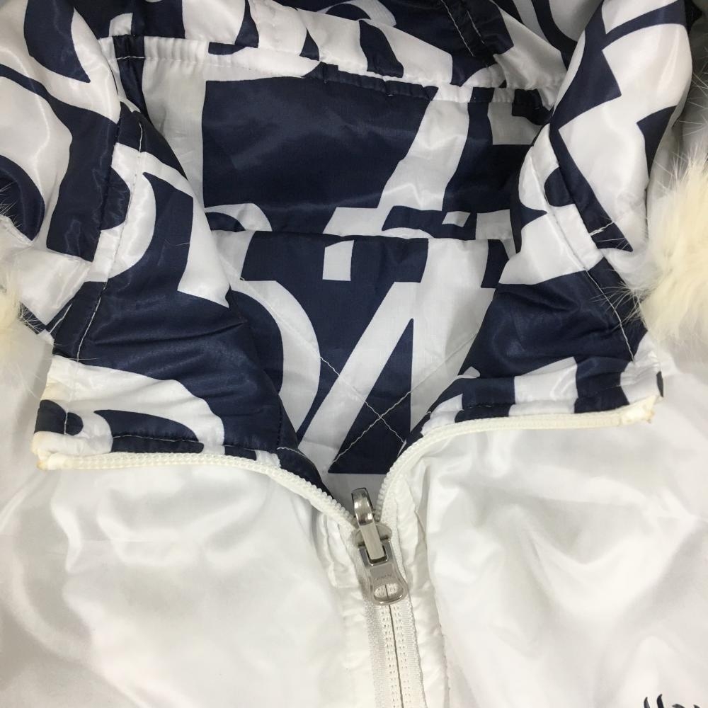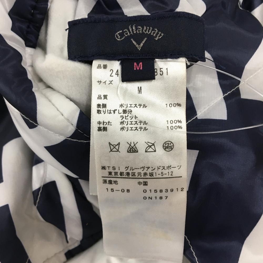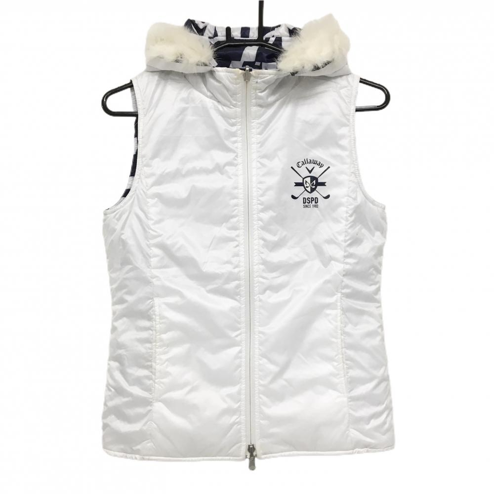 キャロウェイ 中綿リバーシブルベスト ネイビー×白 数字柄 裏白 フードファー着脱可 レディース M ゴルフウェア Callaway