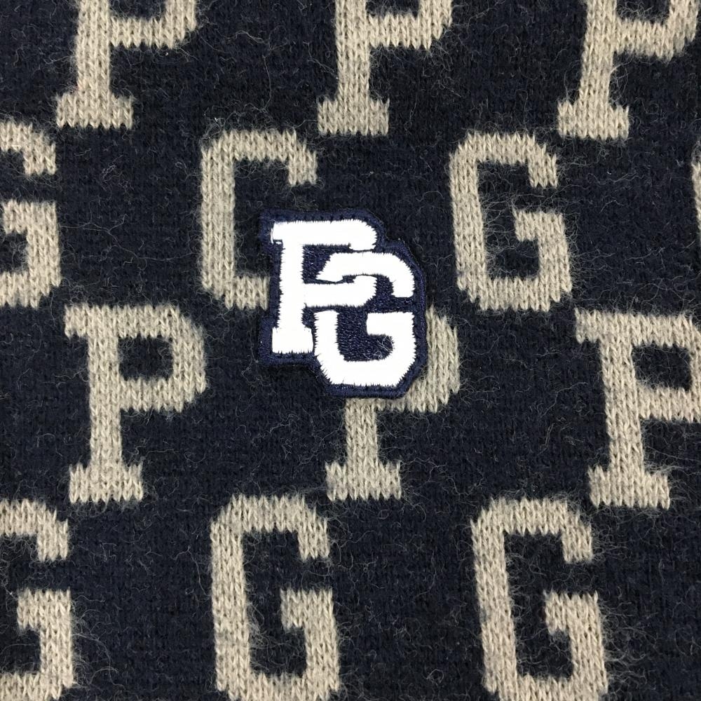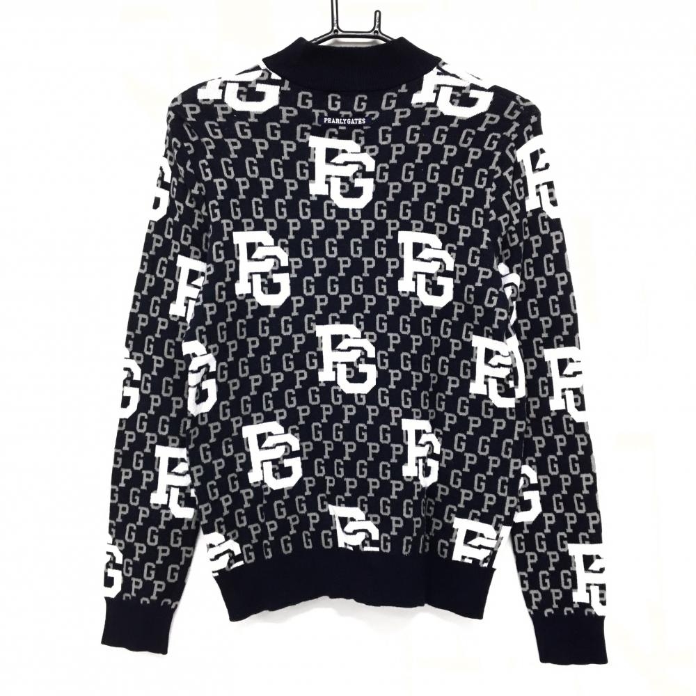 パーリーゲイツ ハイネックセーター ネイビー×グレー ロゴ総柄 コットン100% レディース 1(M) ゴルフウェア 2024年モデル PEARLY GATES