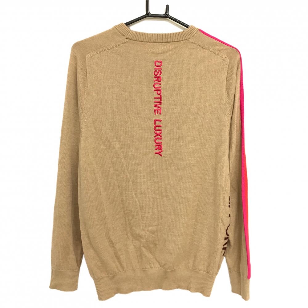 【美品】ジーフォア セーター ベージュ×ピンク 袖ライン シルク・カシミヤ混 ニット メンズ 1002 ゴルフウェア G/FORE