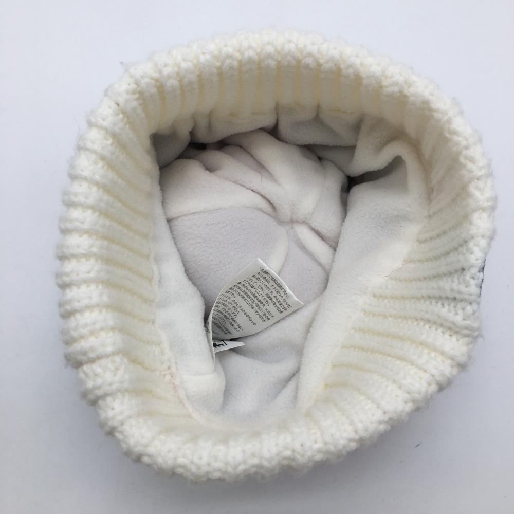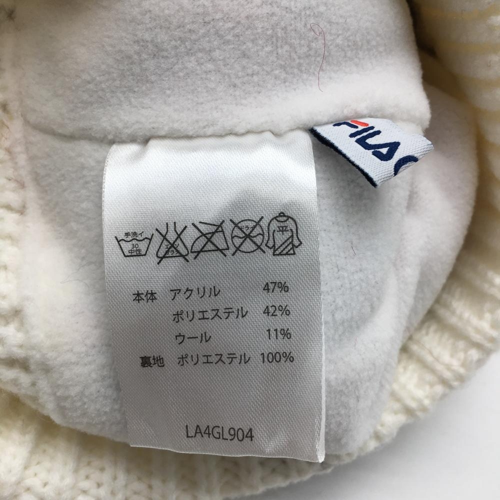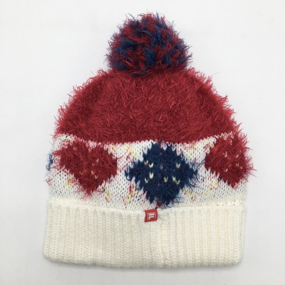 【超美品】フィラゴルフ ニット帽 白×レッド アーガイル柄 シャギーニット ポンポン付 ゴルフウェア FILA GOLF