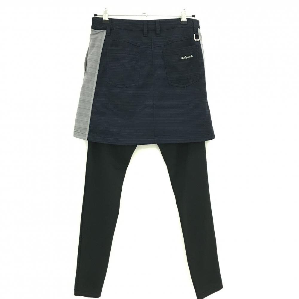 【美品】ホンマ レギンス付きスカート ネイビー×グレー 裏微起毛 レギンス着脱可 毛羽立ち少 レディース 9 ゴルフウェア HONMA