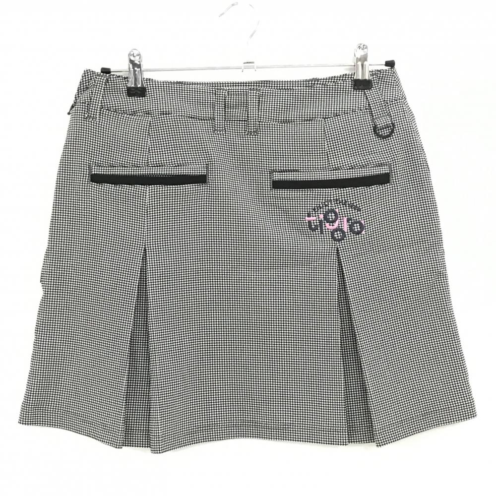 【超美品】ティゴラ スカート 白×黒 千鳥格子 ボックスプリーツ ロゴ刺しゅう レディース 11 ゴルフウェア TIGORA