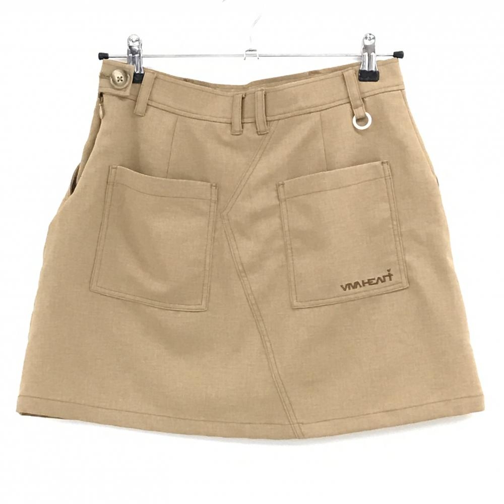 【超美品】ビバハート スカート ライトブラウン フロントボタン ロゴ刺しゅう レディース 42(L) ゴルフウェア VIVA HEART