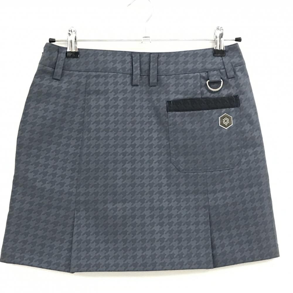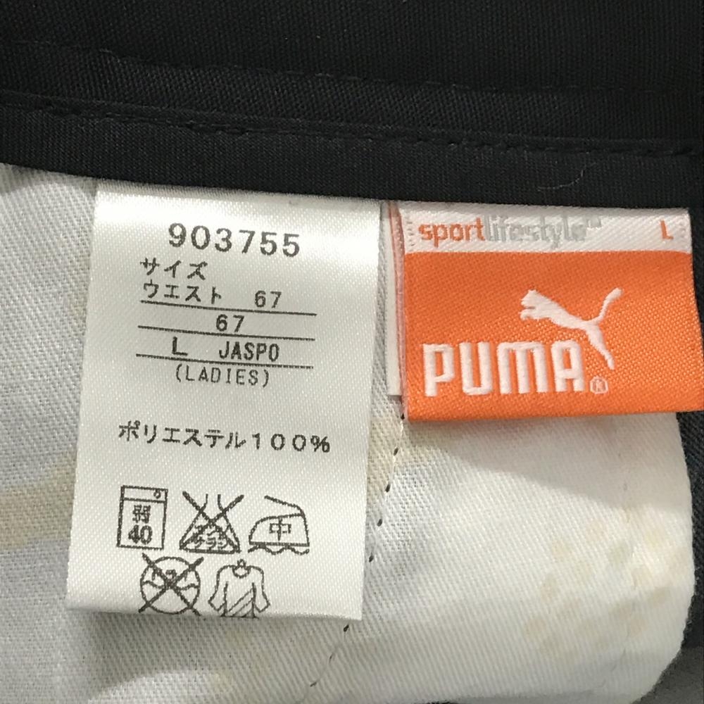 【超美品】プーマ スカート グレー×黒 千鳥柄地模様 ロゴ刺しゅう レディース L ゴルフウェア PUMA