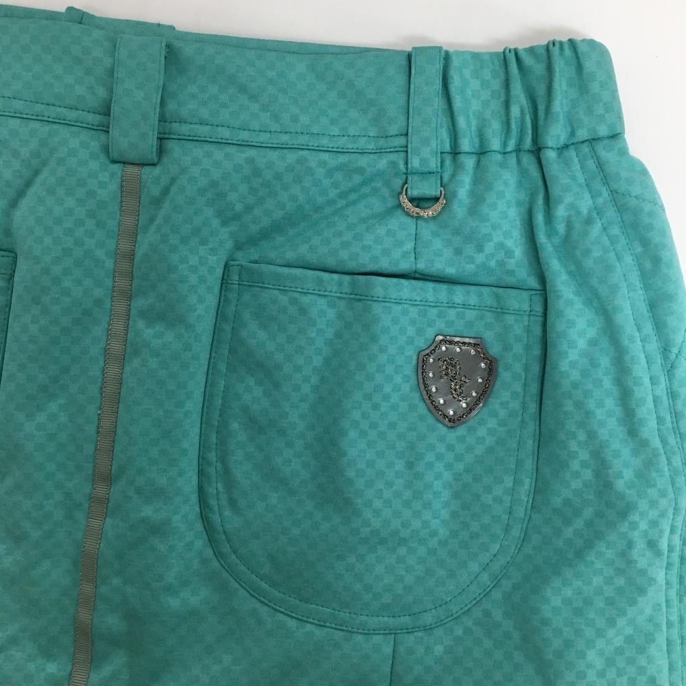 【美品】ヒールクリーク 中綿スカート ブルーグリーン ブロックチェック レディース 40(M) ゴルフウェア Heal Creek