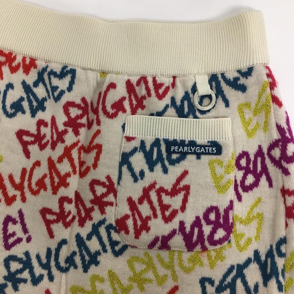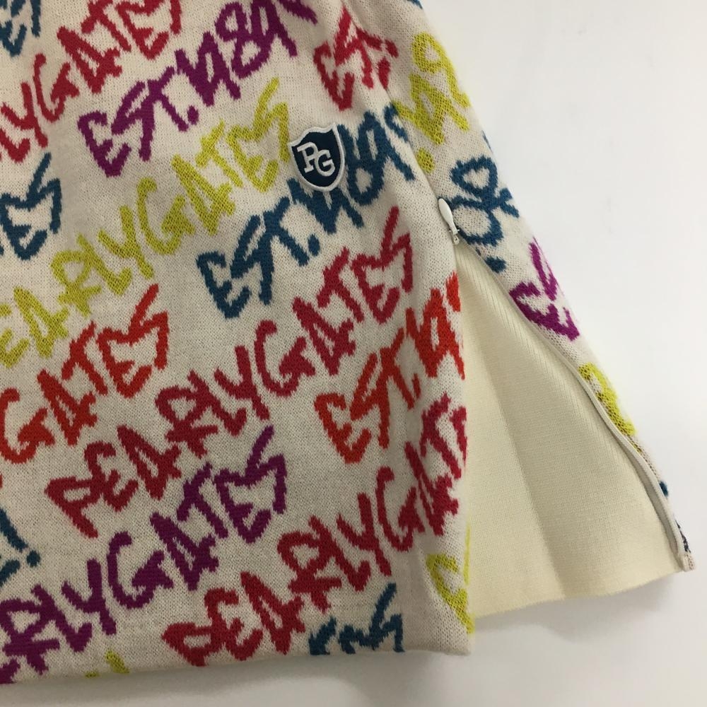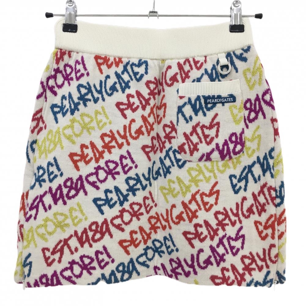 【新品】パーリーゲイツ ニットスカート 白×マルチカラー ロゴ総柄 レディース 0(S) ゴルフウェア PEARLY GATES