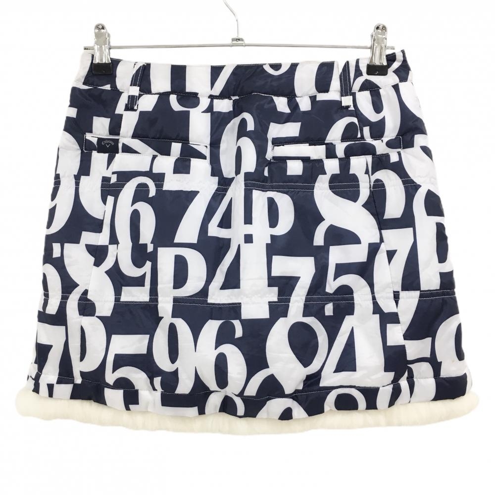 【美品】キャロウェイ 2WAY中綿スカート ネイビー×白 数字柄 裾ファー着脱可 レディース M ゴルフウェア Callaway