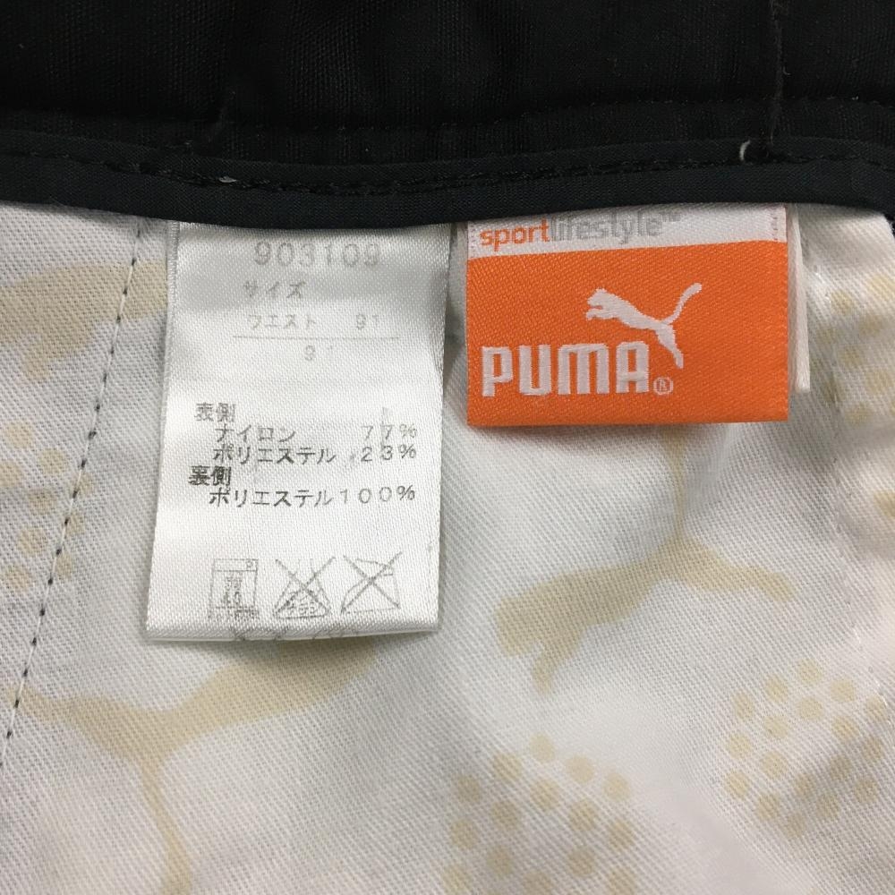 【美品】プーマ パンツ グレー×黒 ヘリンボーン織 ロゴ刺しゅう 裏起毛 メンズ 91 ゴルフウェア PUMA