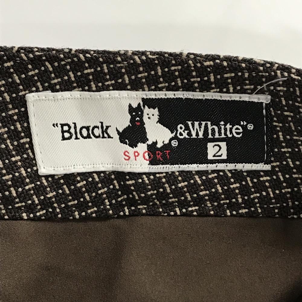 【美品】ブラックアンドホワイト パンツ ブラウン×ベージュ 格子柄風 バックロゴ ウール98% レディース 2(M) ゴルフウェア Black&White