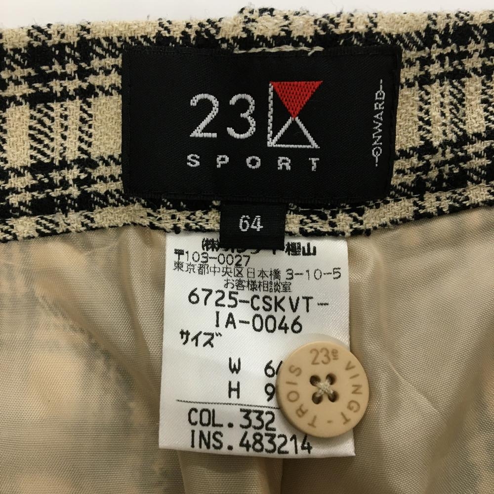 【美品】23区スポーツ キュロットスカート ベージュ×黒 チェック 裏地付 レディース 64 ゴルフウェア 23区