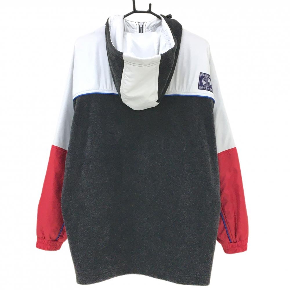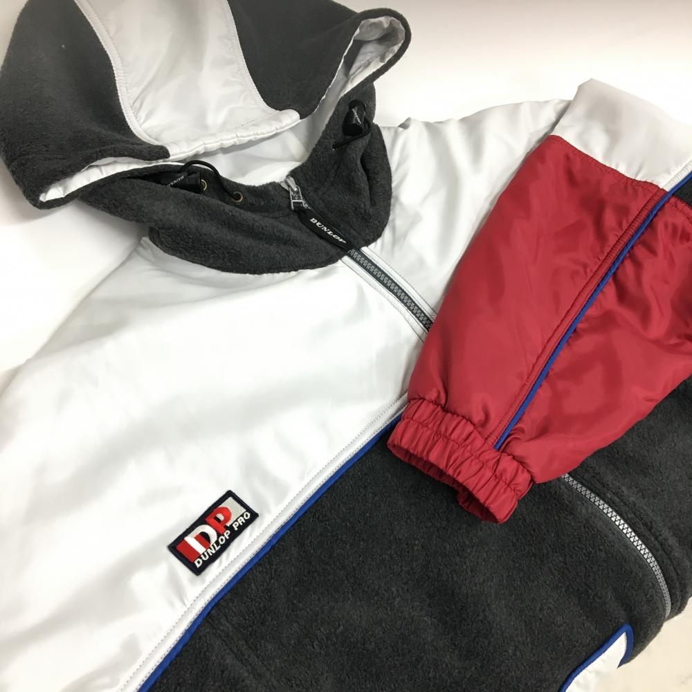 【美品】ダンロップ ジップパーカー 白×グレー×レッド 裏起毛 ジャケット メンズ MA ゴルフウェア DUNLOP
