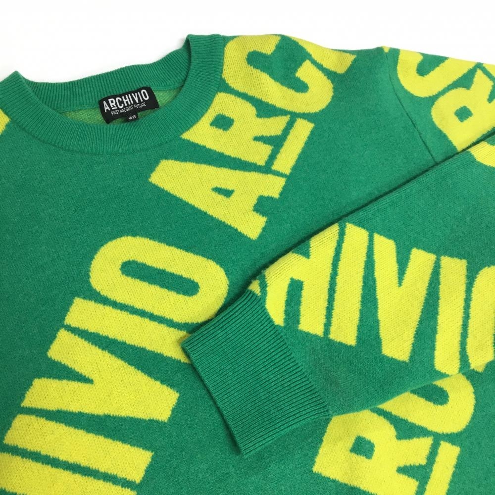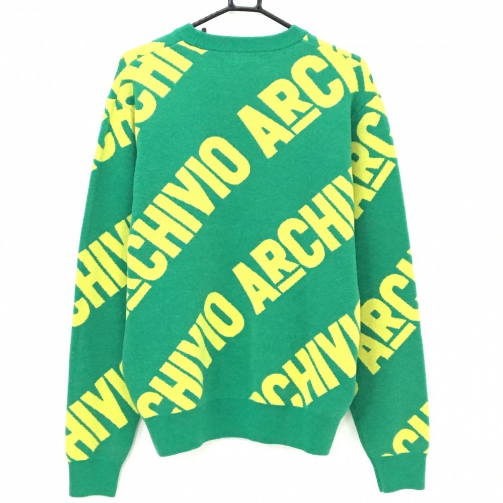 【超美品】アルチビオ セーター グリーン×イエロー 斜めロゴ総柄 ウール混 肥野竜也コラボ メンズ 48(L) ゴルフウェア archivio