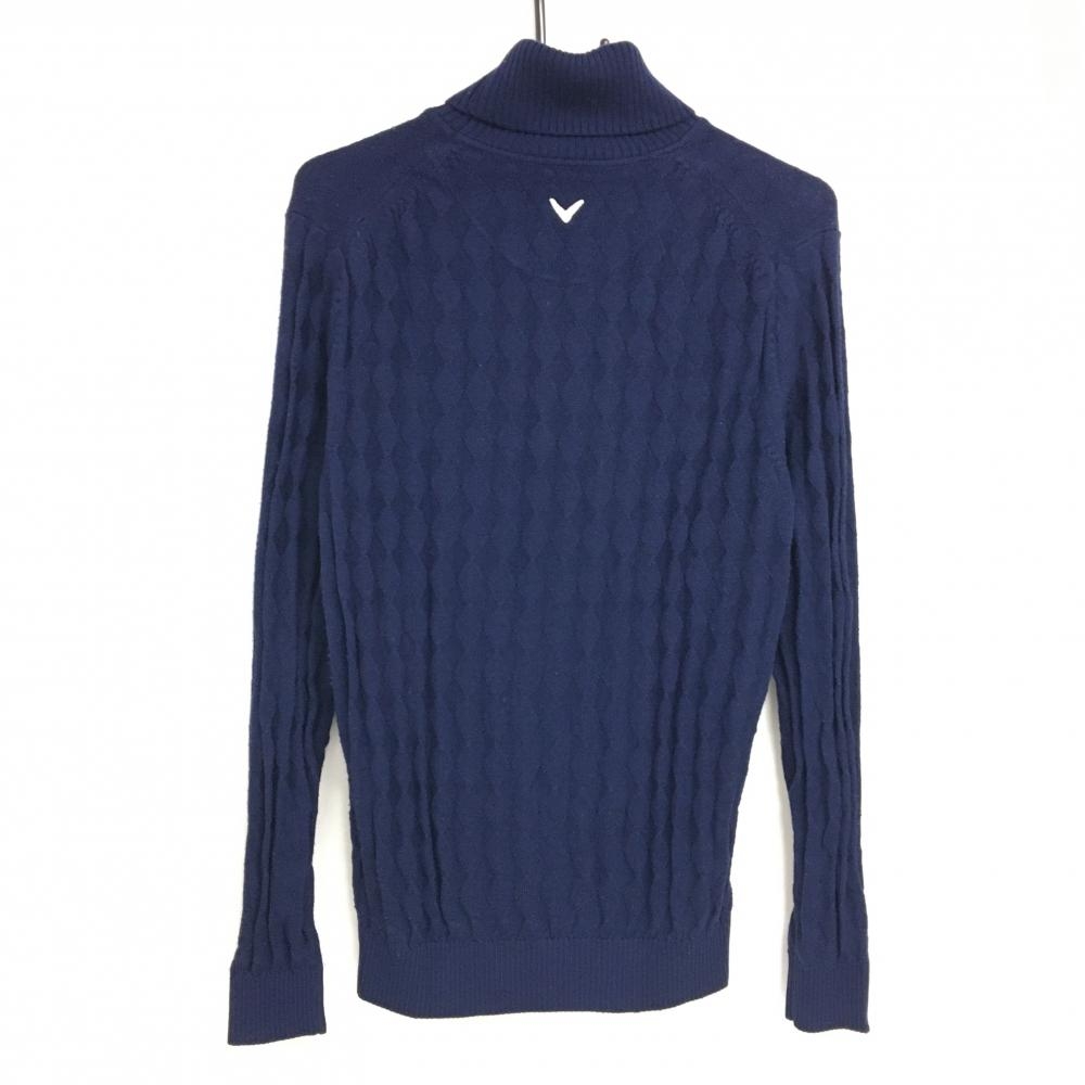 【美品】キャロウェイ タートルネックセーター ネイビー ダイヤ柄編み ニット メンズ LL ゴルフウェア Callaway