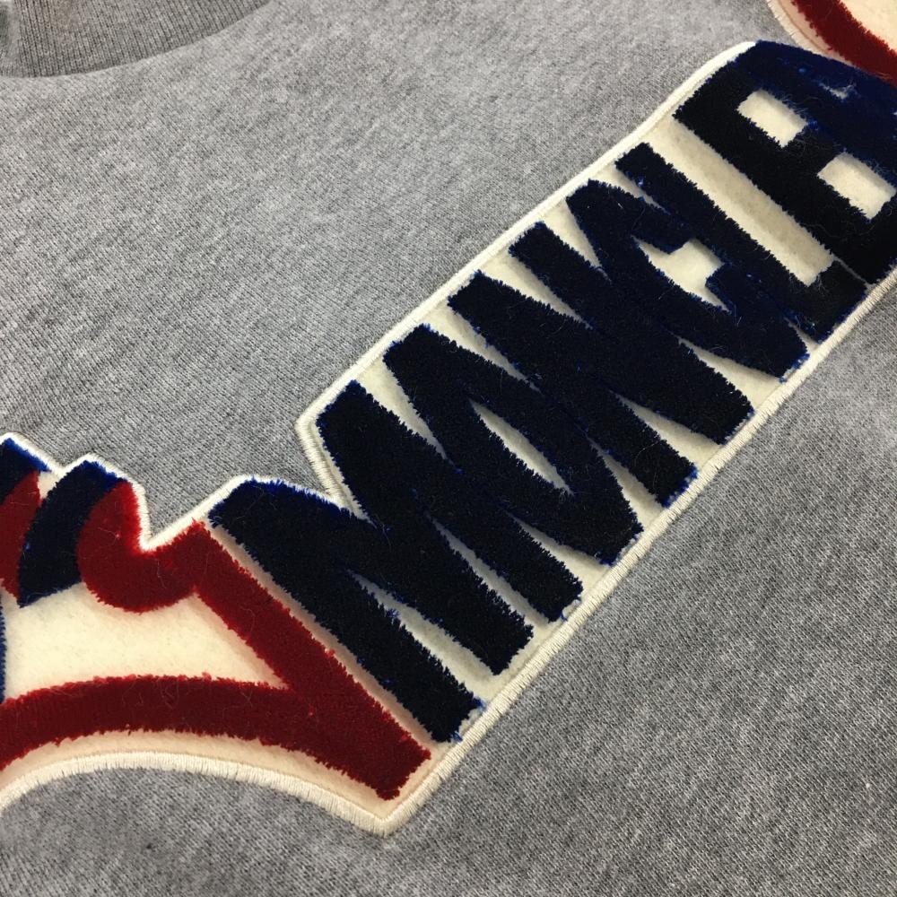 【美品】モンクレール トレーナー グレー×ネイビー 裏起毛 スウェット 立体ロゴ ビッグワッペン メンズ 2 ゴルフウェア MONCLER