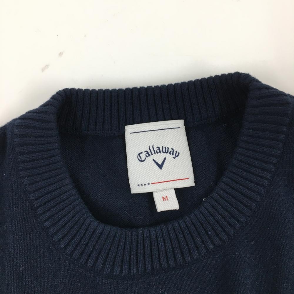 キャロウェイ セーター ネイビー×白 胸元アーガイル柄 カシミヤ混 ニット レディース M ゴルフウェア Callaway