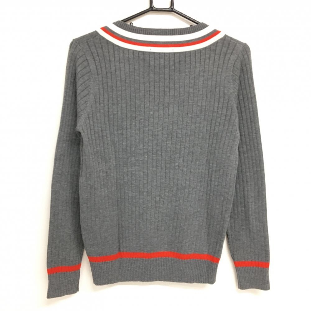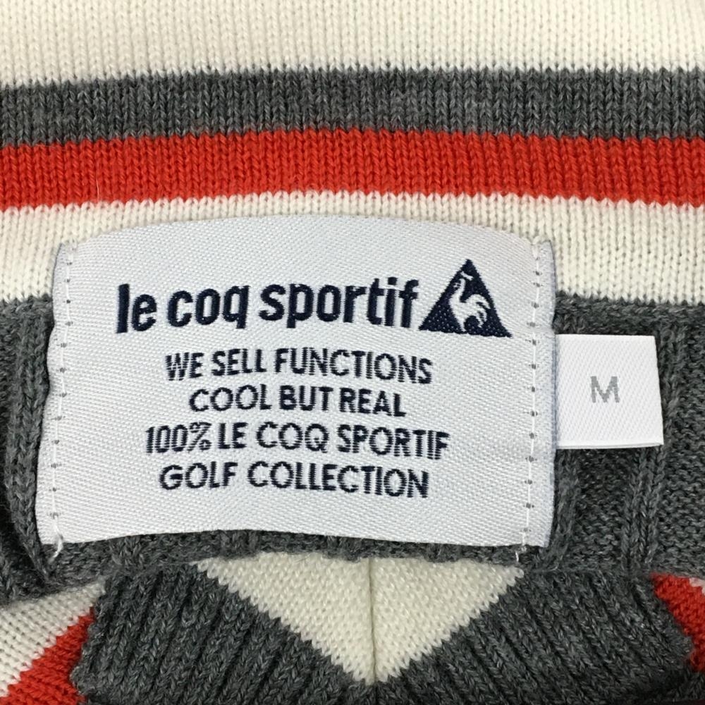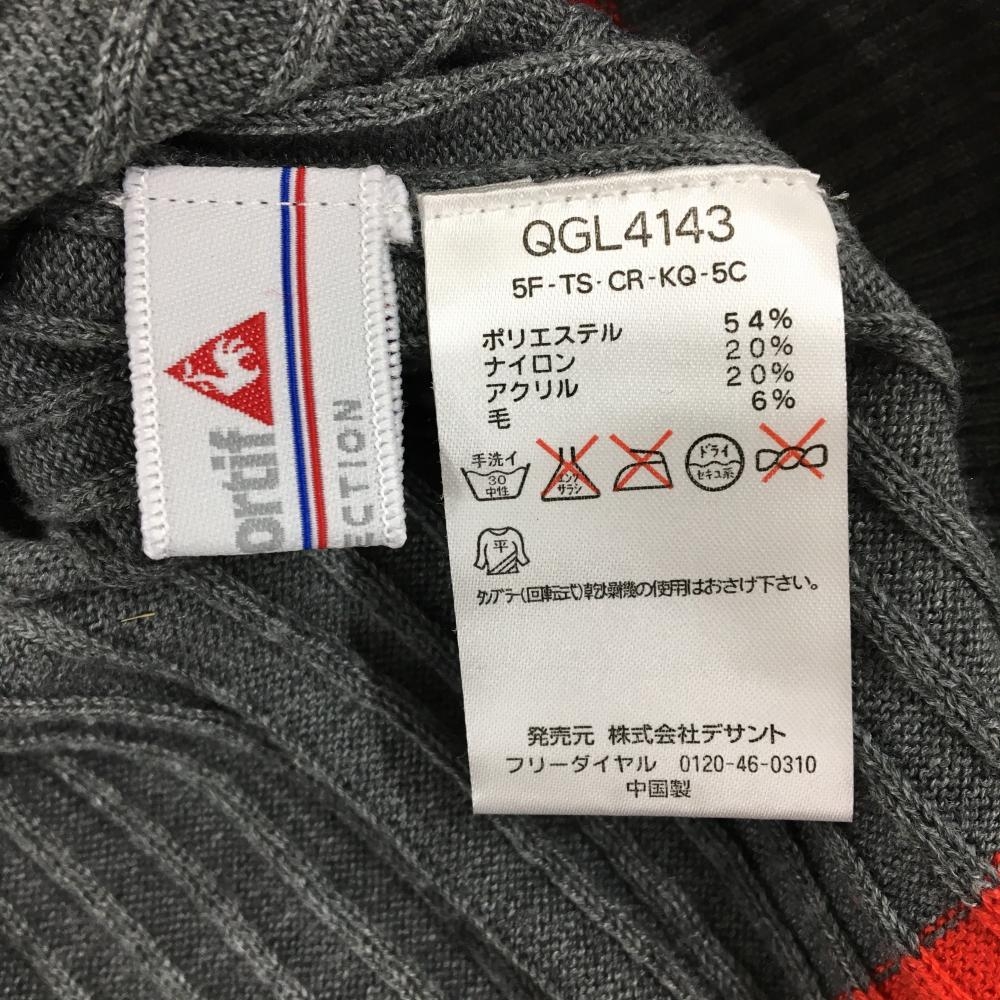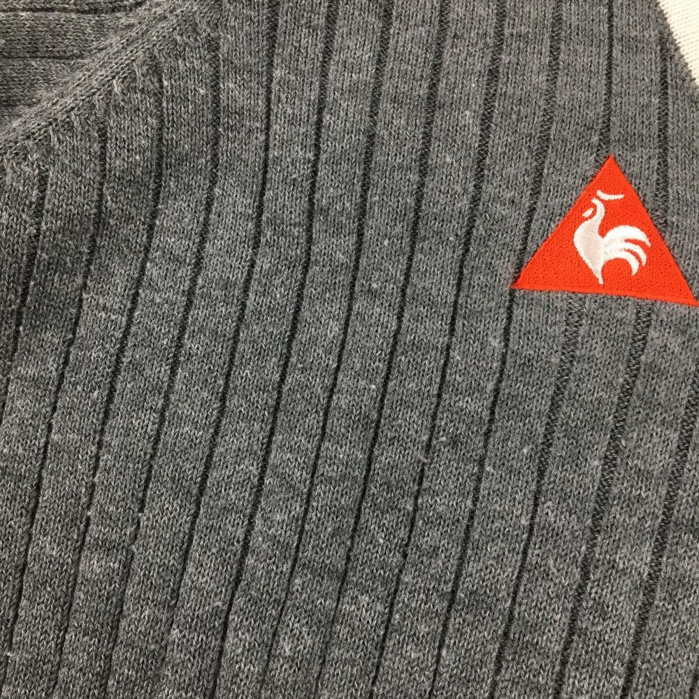 ルコックゴルフ セーター グレー×レッド Vネック 複数ワッペン レディース M ゴルフウェア le coq sportif