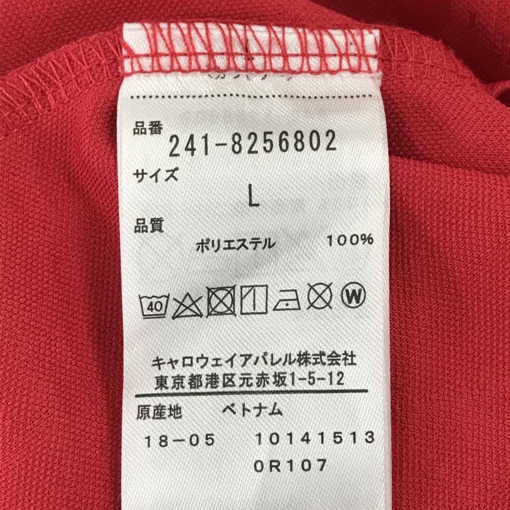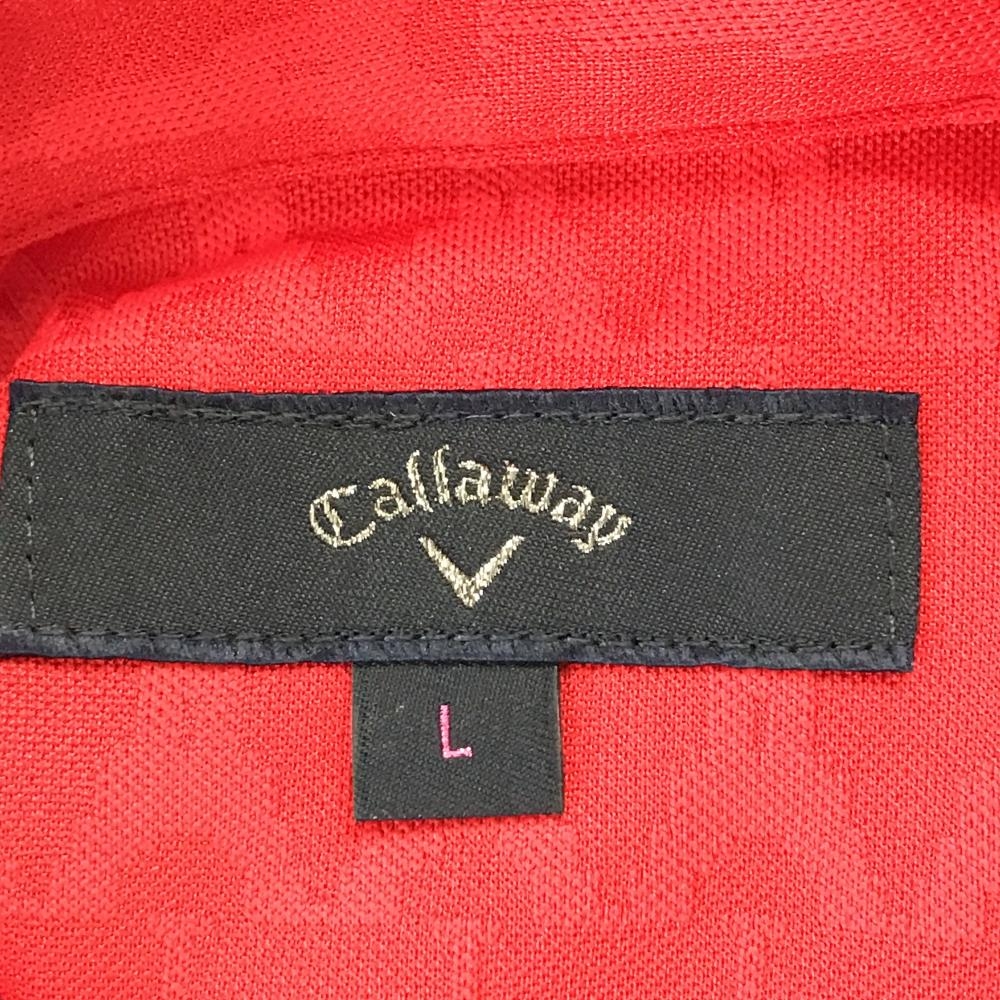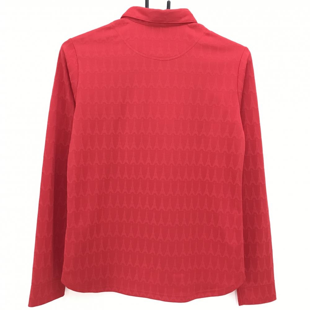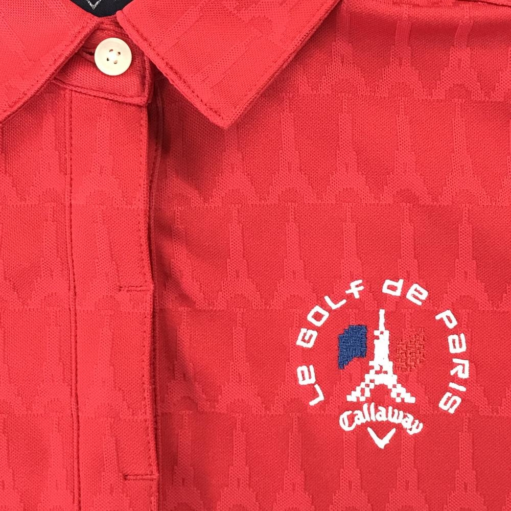 【超美品】キャロウェイ 長袖ポロシャツ レッド エッフェル塔総柄 織生地 刺しゅう レディース L ゴルフウェア Callaway