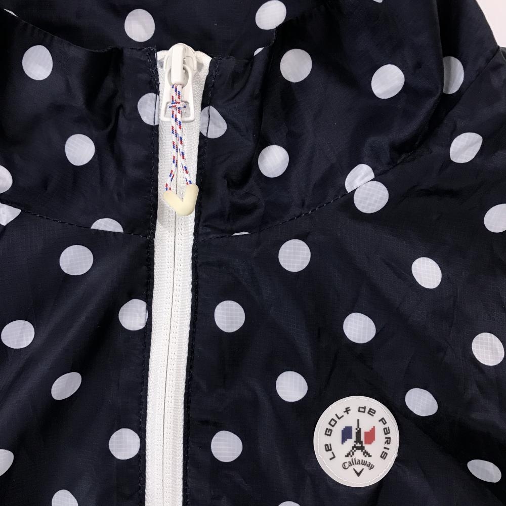 キャロウェイ ジャケットブルゾン ネイビー×白 水玉柄 裏地メッシュ ダブルジップ レディース S ゴルフウェア Callaway
