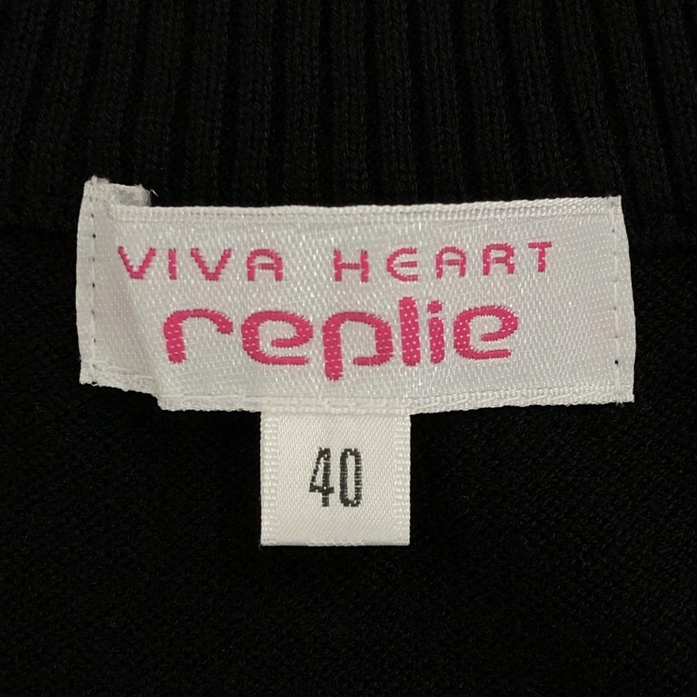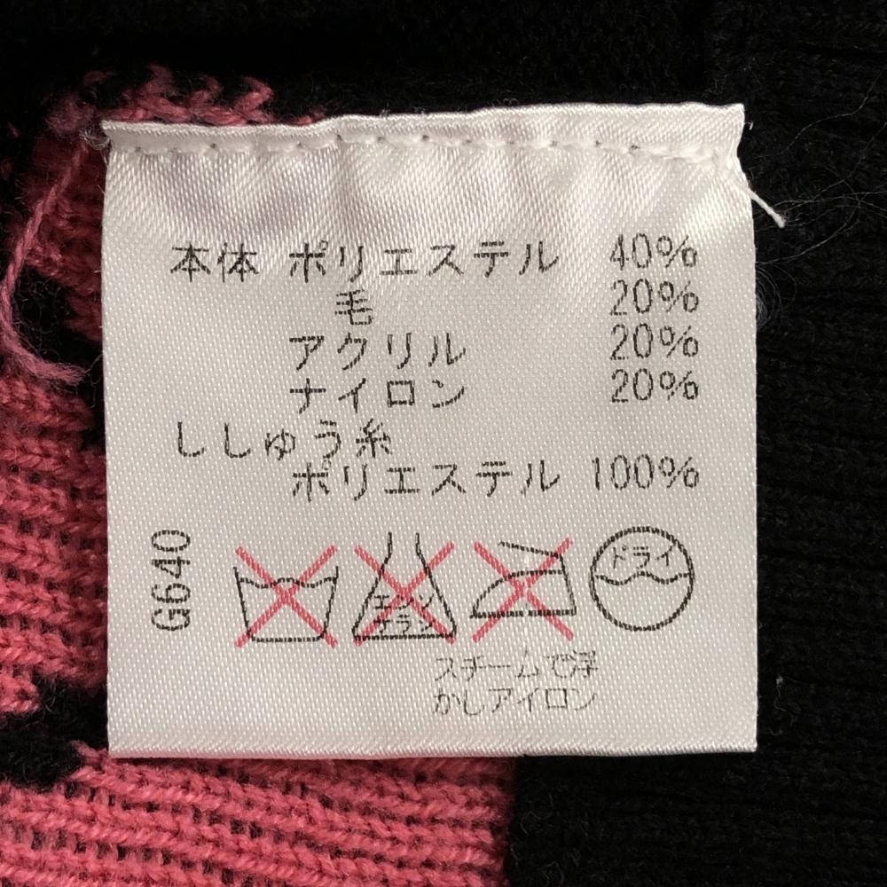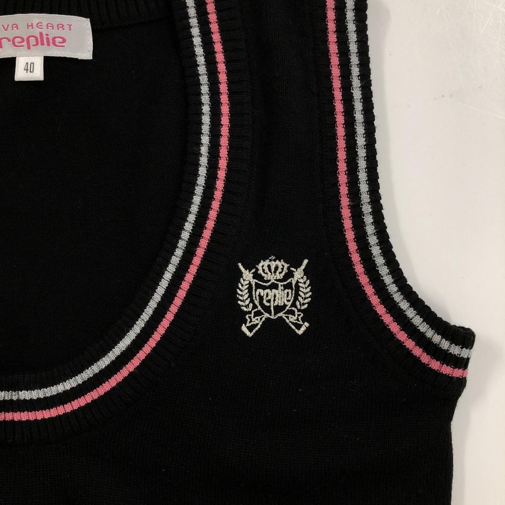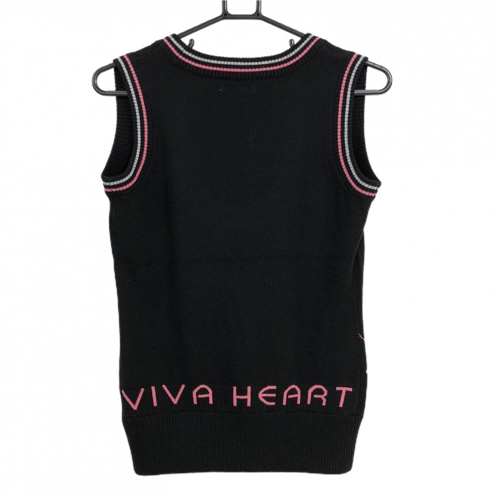 【超美品】ビバハートreplie ニットベスト 黒×ピンク 前面裾アーガイル柄 ウール混 レディース 40(M) ゴルフウェア VIVA HEART