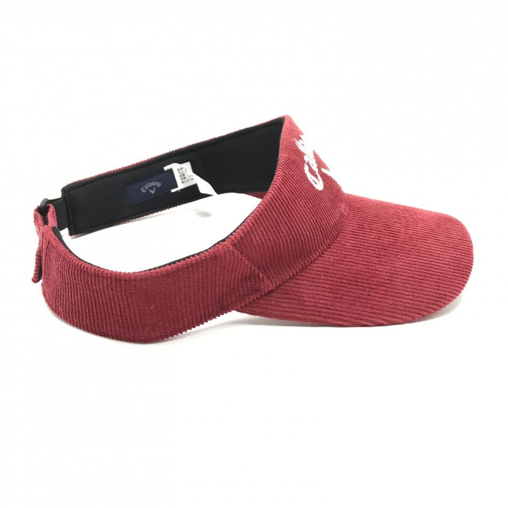 【超美品】キャロウェイ サンバイザー レッド×白 コーデュロイ ロゴ刺しゅう FR ゴルフウェア Callaway