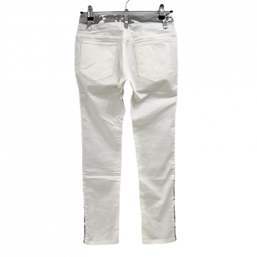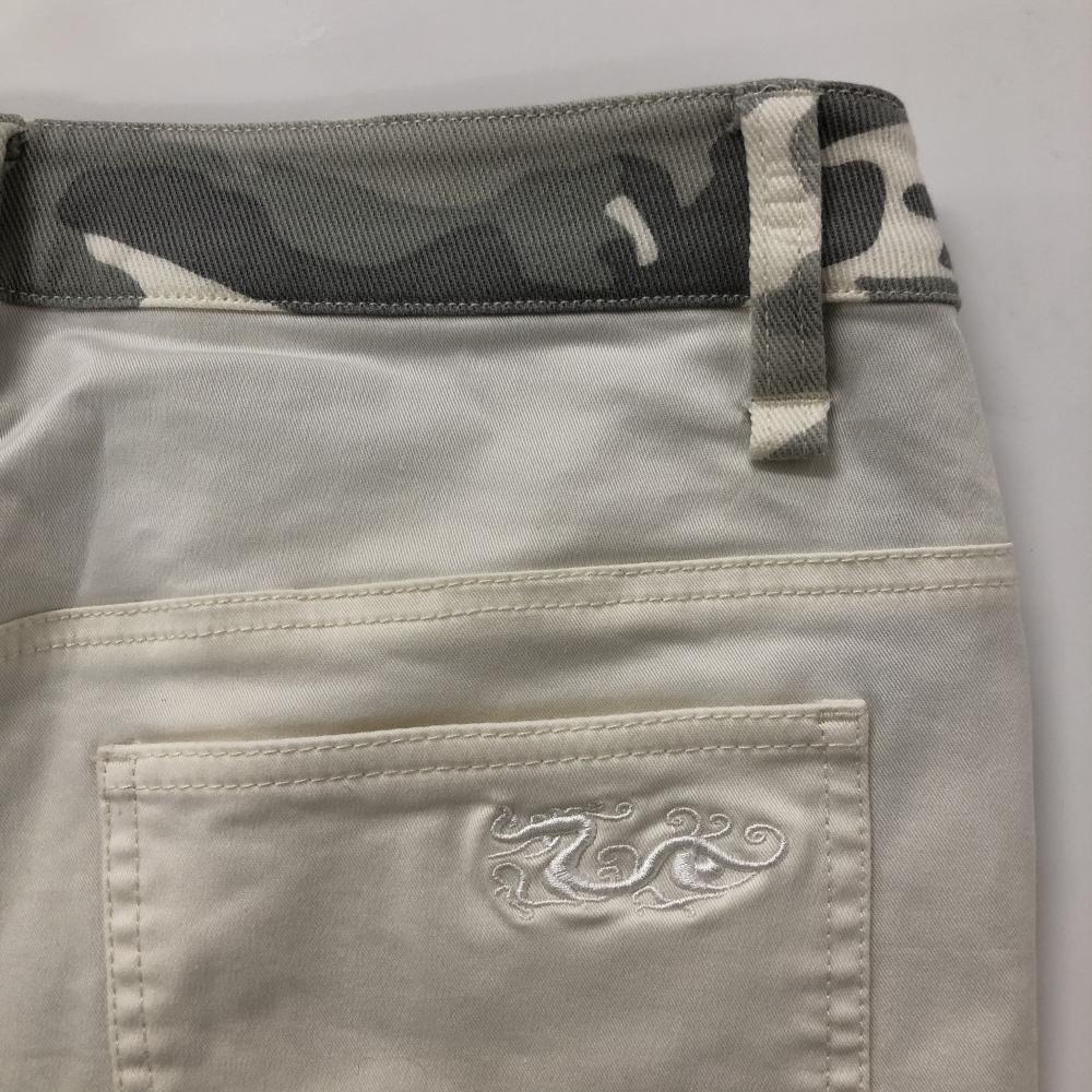 【超美品】ダンスウィズドラゴン パンツ 白×グレー 前面カモフラ柄 迷彩 ストレッチ レディース 2(M) ゴルフウェア Dance With Dragon