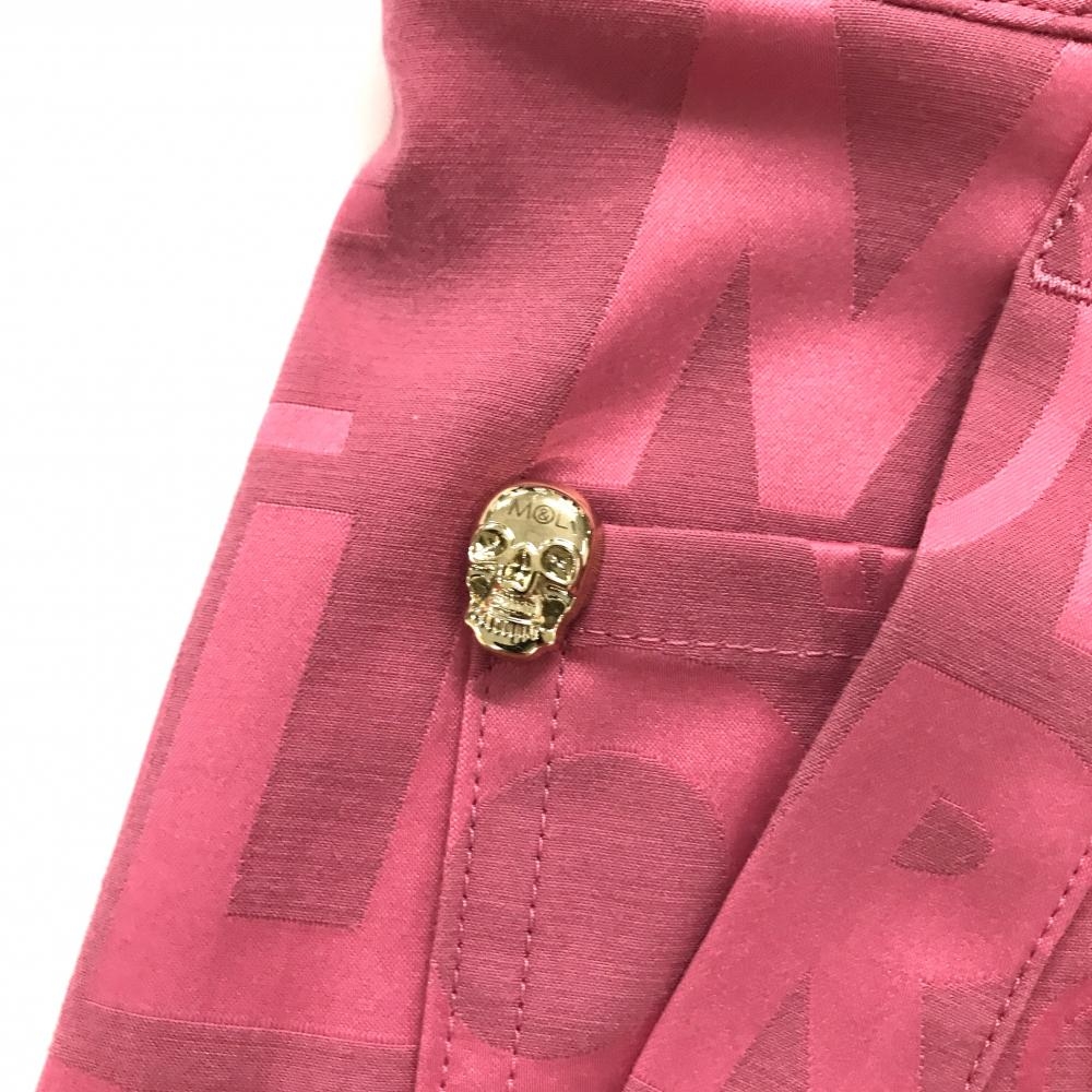 【美品】マークアンドロナ スカート ピンク ロゴ総柄地模様 ストレッチ レディース 36(S) ゴルフウェア MARK&LONA