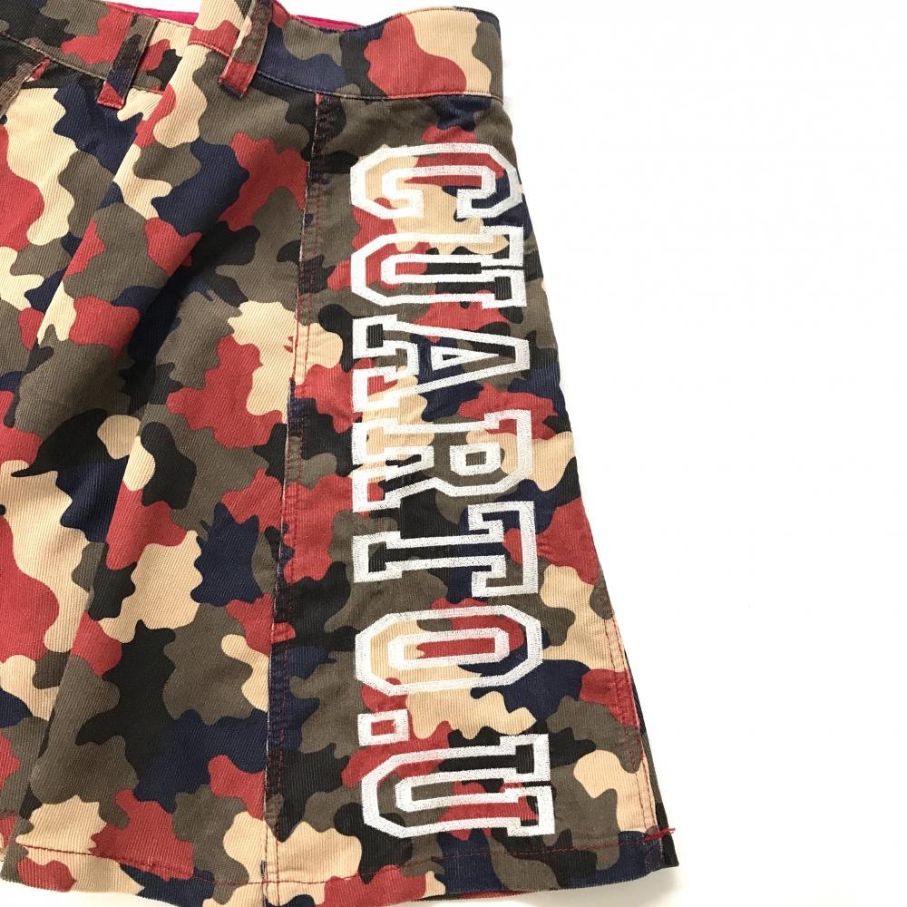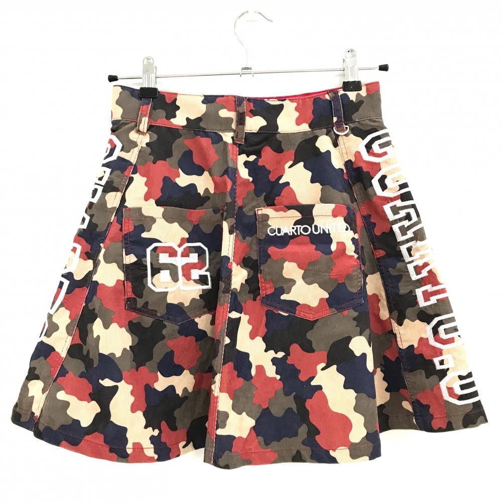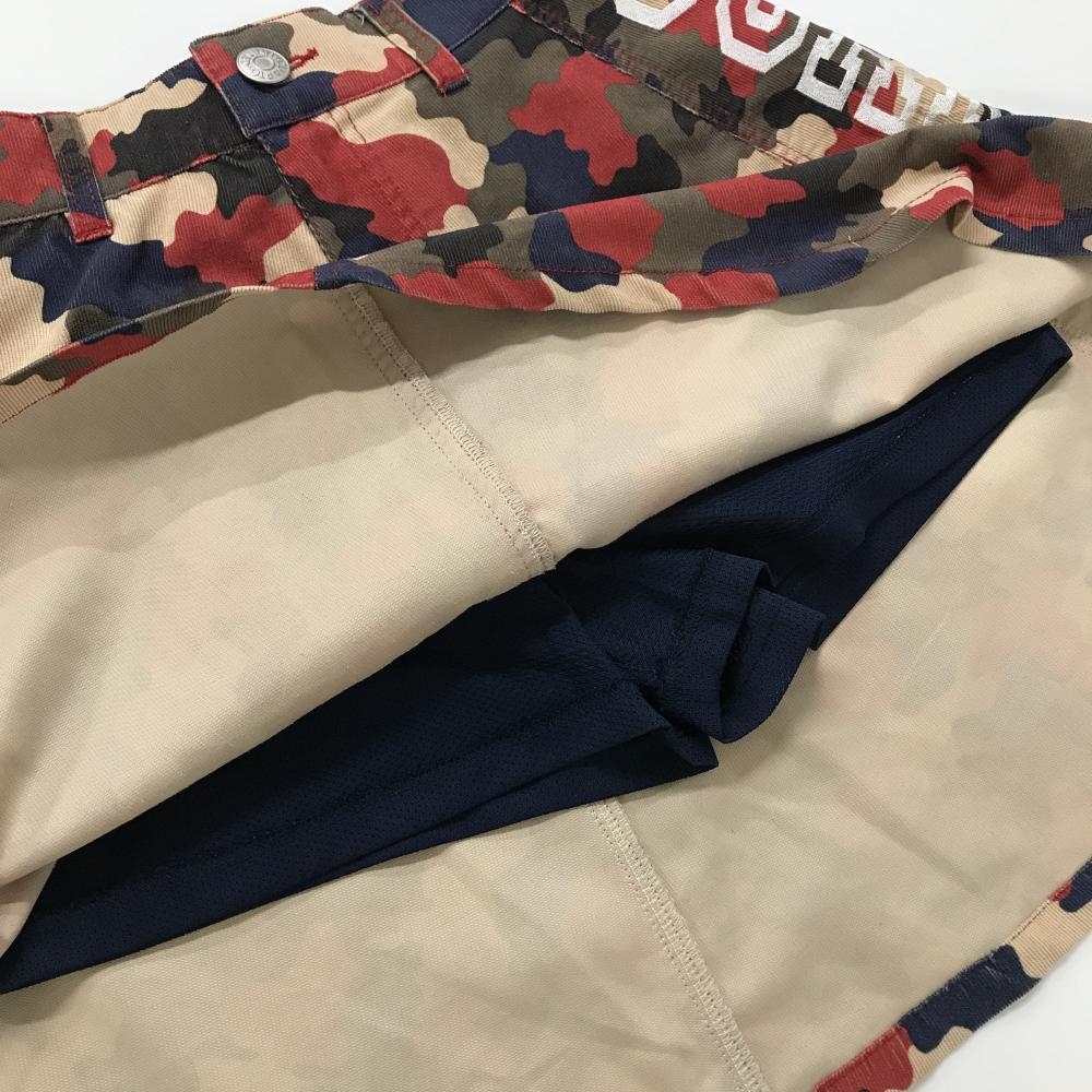 【超美品】クアルトユナイテッド フレアスカート ブラウン×レッド カモフラ柄 迷彩 レディース S ゴルフウェア CUARTO UNITED