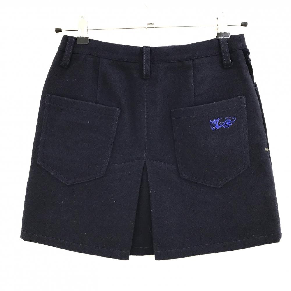 【超美品】ダンスウィズドラゴン スカート ネイビー 前面ベロア 背面ウール混 レディース 1(S) ゴルフウェア Dance With Dragon