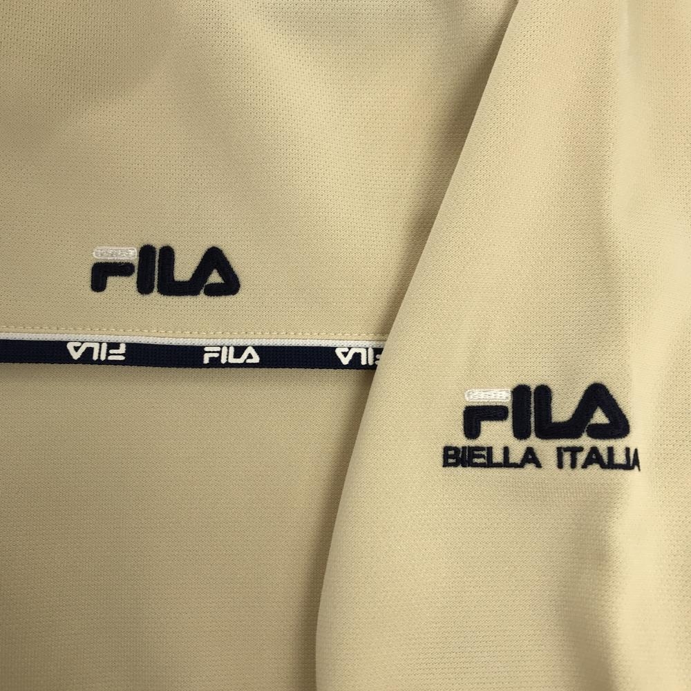 【超美品】フィラ ジャケットブルゾン ライトイエロー×ネイビー 胸元ライン ロゴ刺しゅう レディース M ゴルフウェア FILA GOLF
