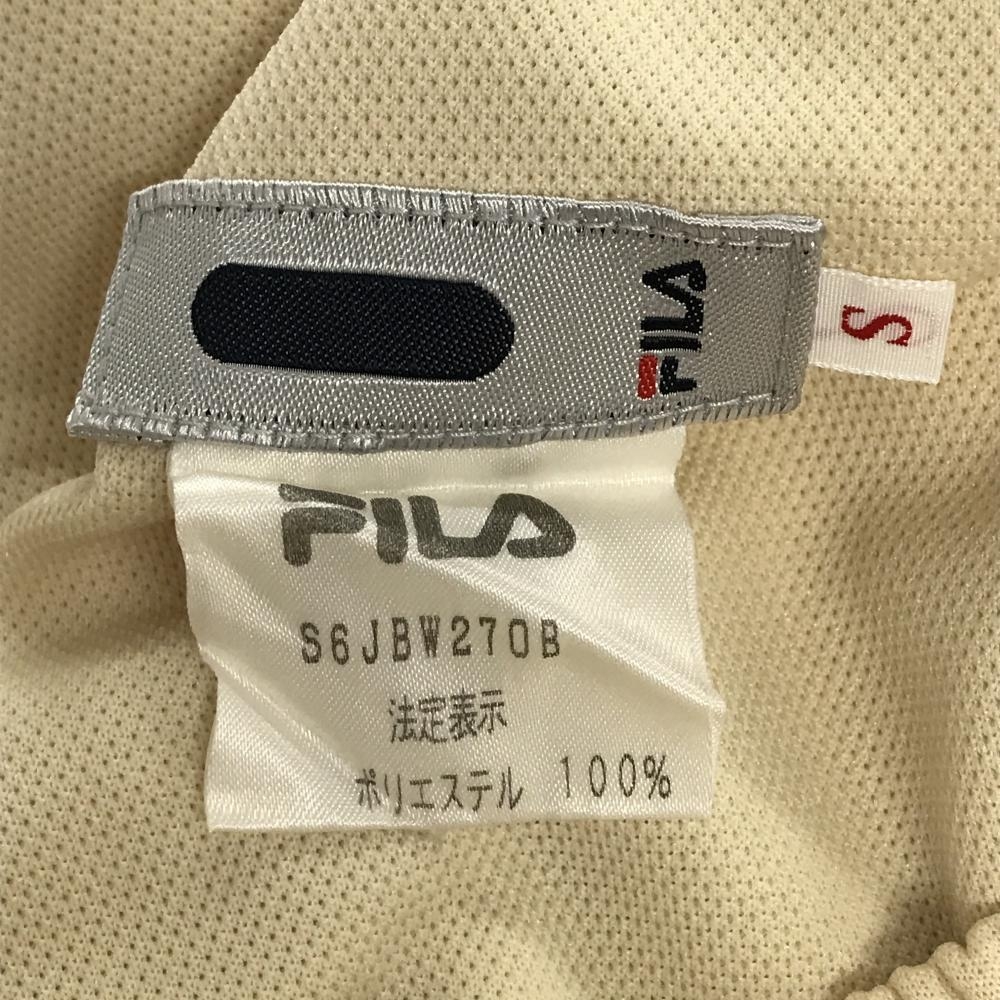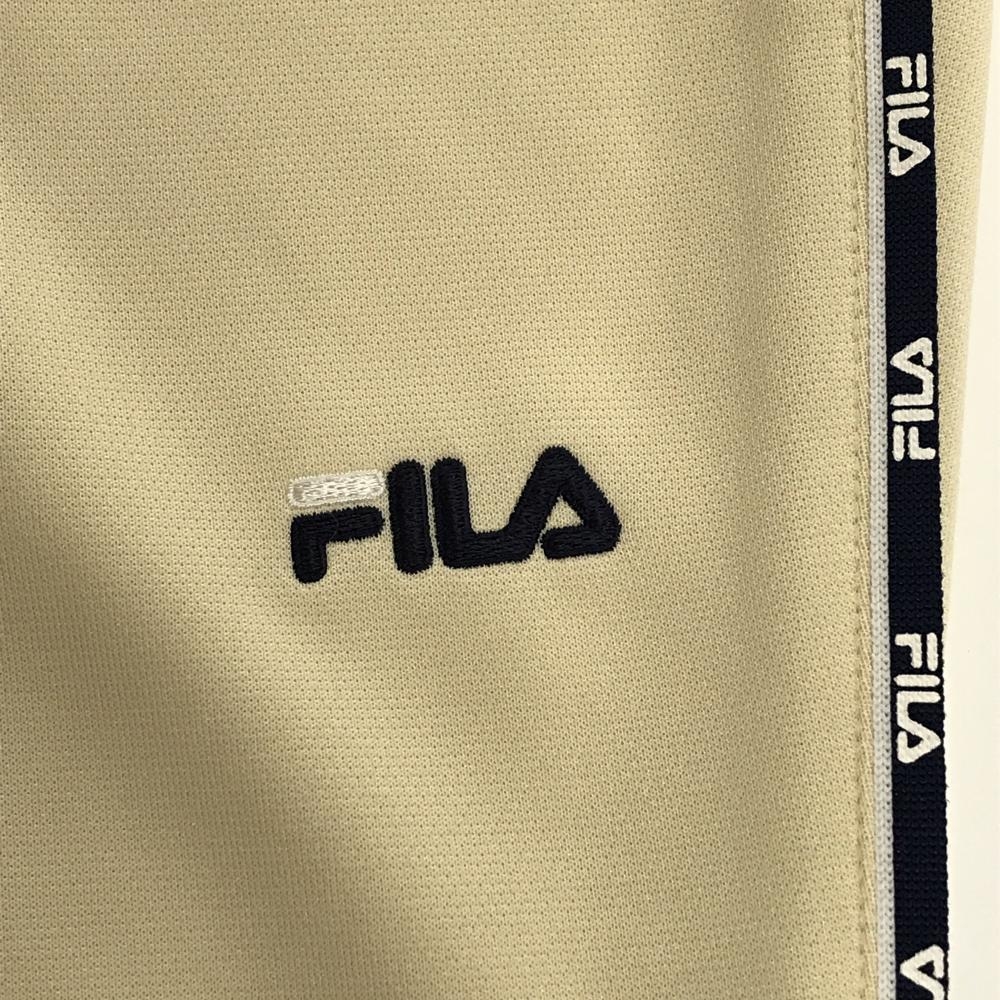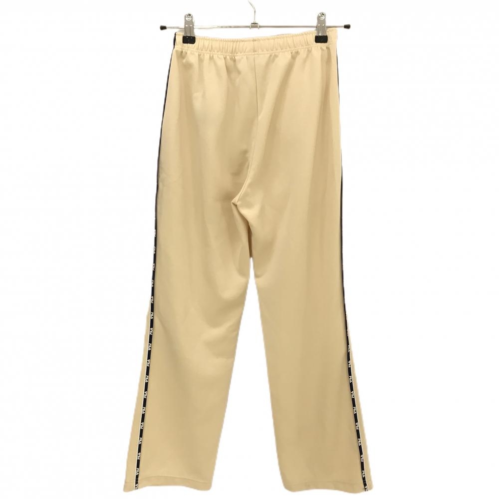 【美品】フィラ パンツ ライトイエロー ×ネイビー サイドライン ロゴ刺しゅう レディース S ゴルフウェア FILA GOLF