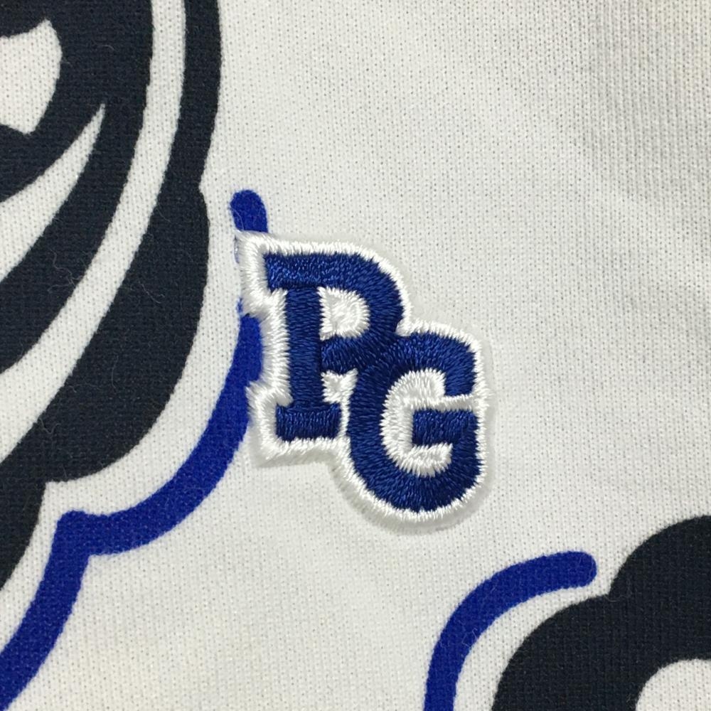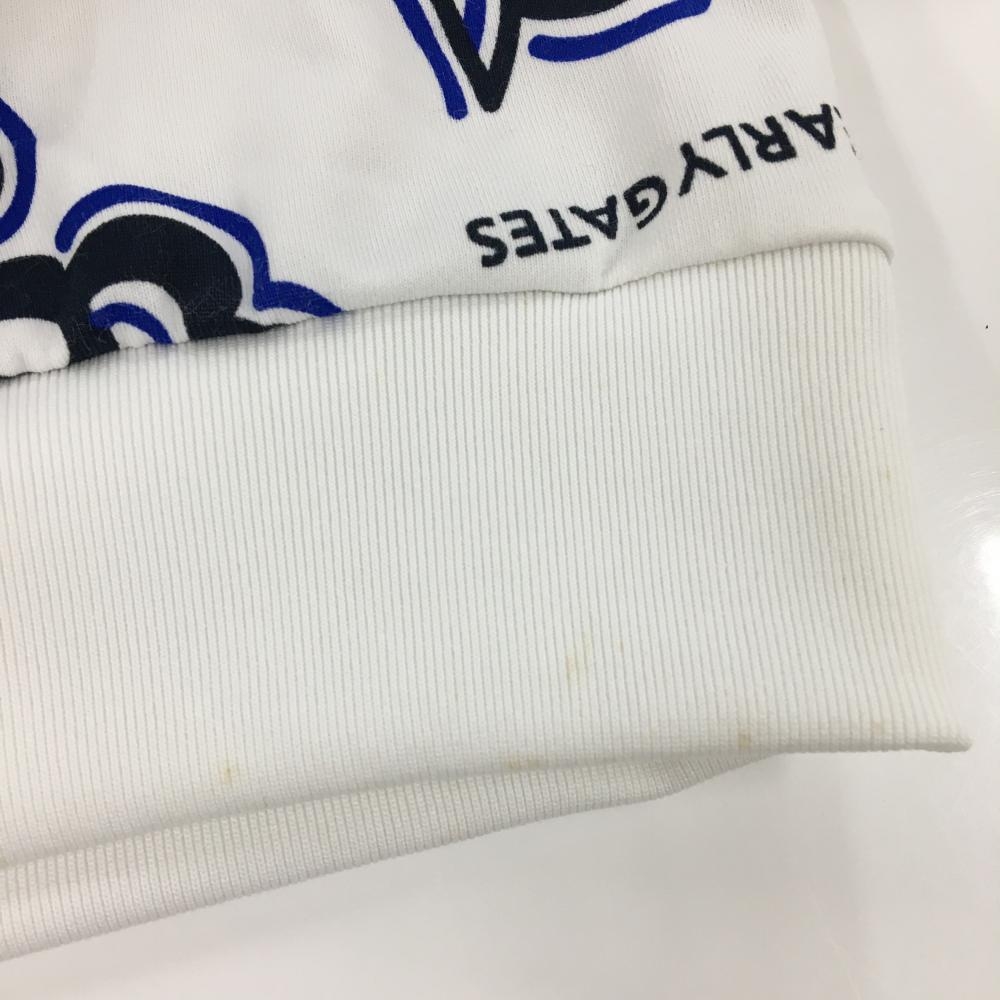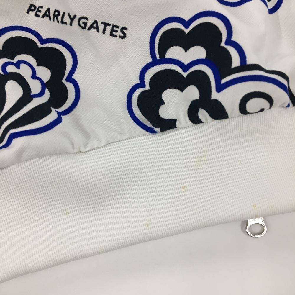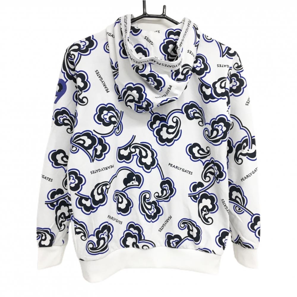 【美品】パーリーゲイツ ジップパーカー 白×ブルー 総柄 ジップロゴ ブルゾン レディース 0(S) ゴルフウェア PEARLY GATES