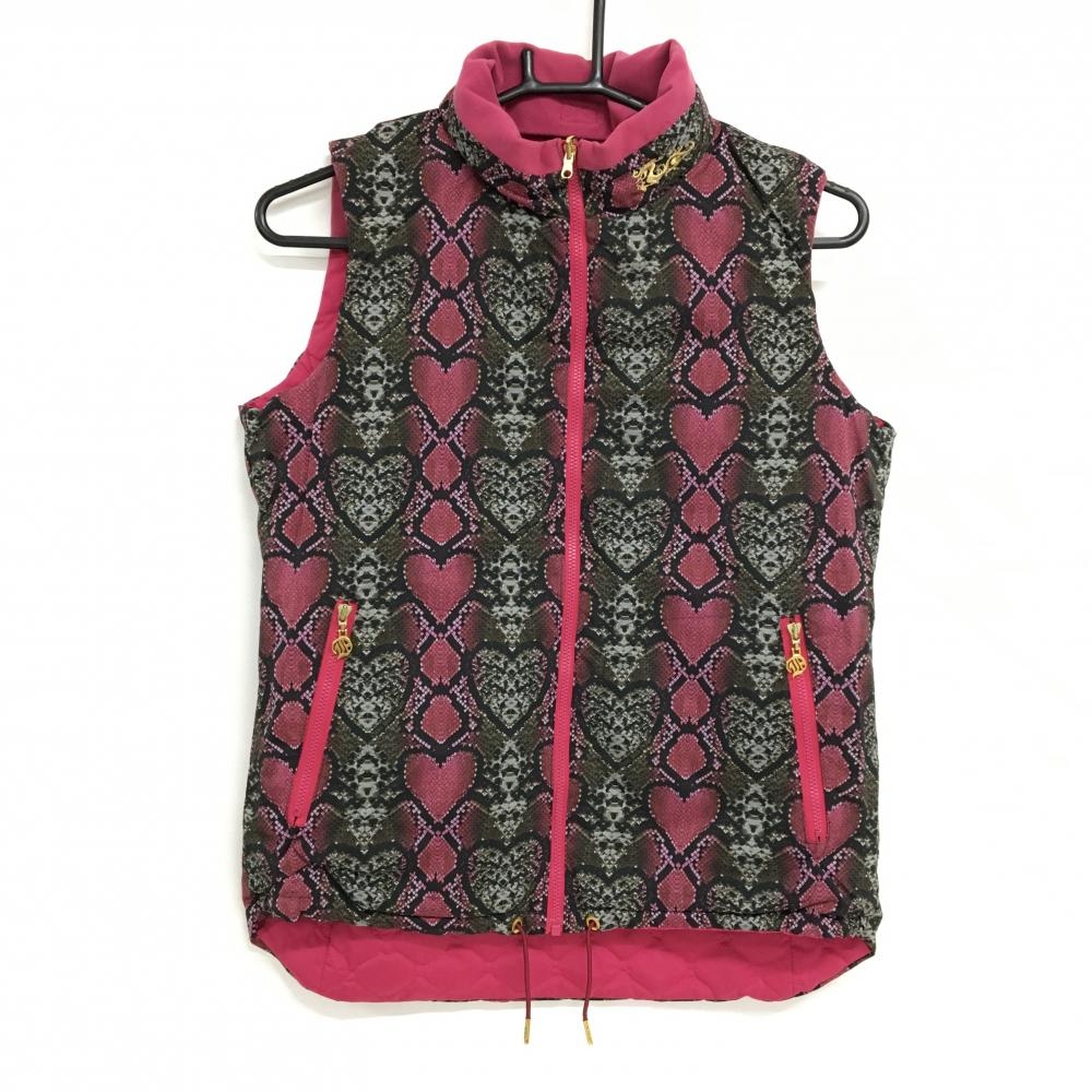 【美品】ダンスウィズドラゴン 中綿リバーシブルベスト ピンク キルティング レディース 2(M) ゴルフウェア Dance With Dragon