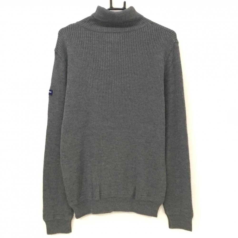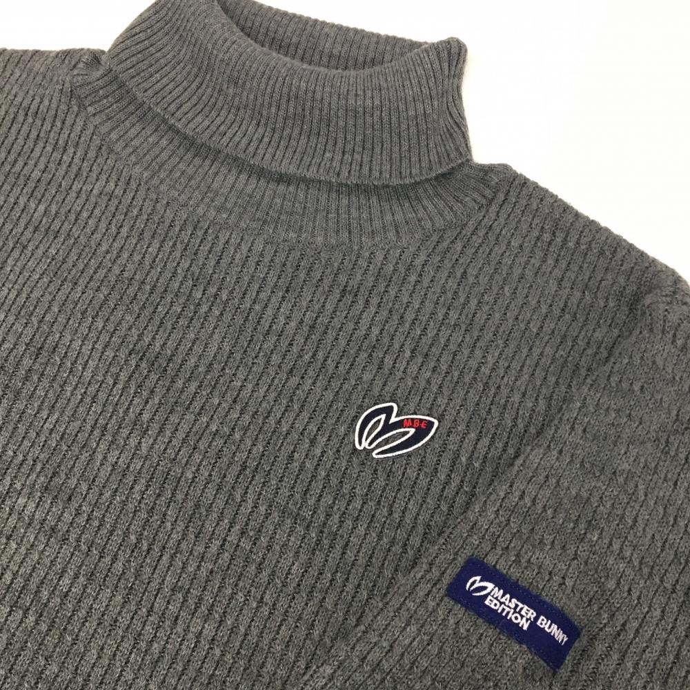 【美品】マスターバニー セーター グレー 細ケーブル編み ウール混 タートルネック メンズ 6(XL) ゴルフウェア MASTER BUNNY EDITION