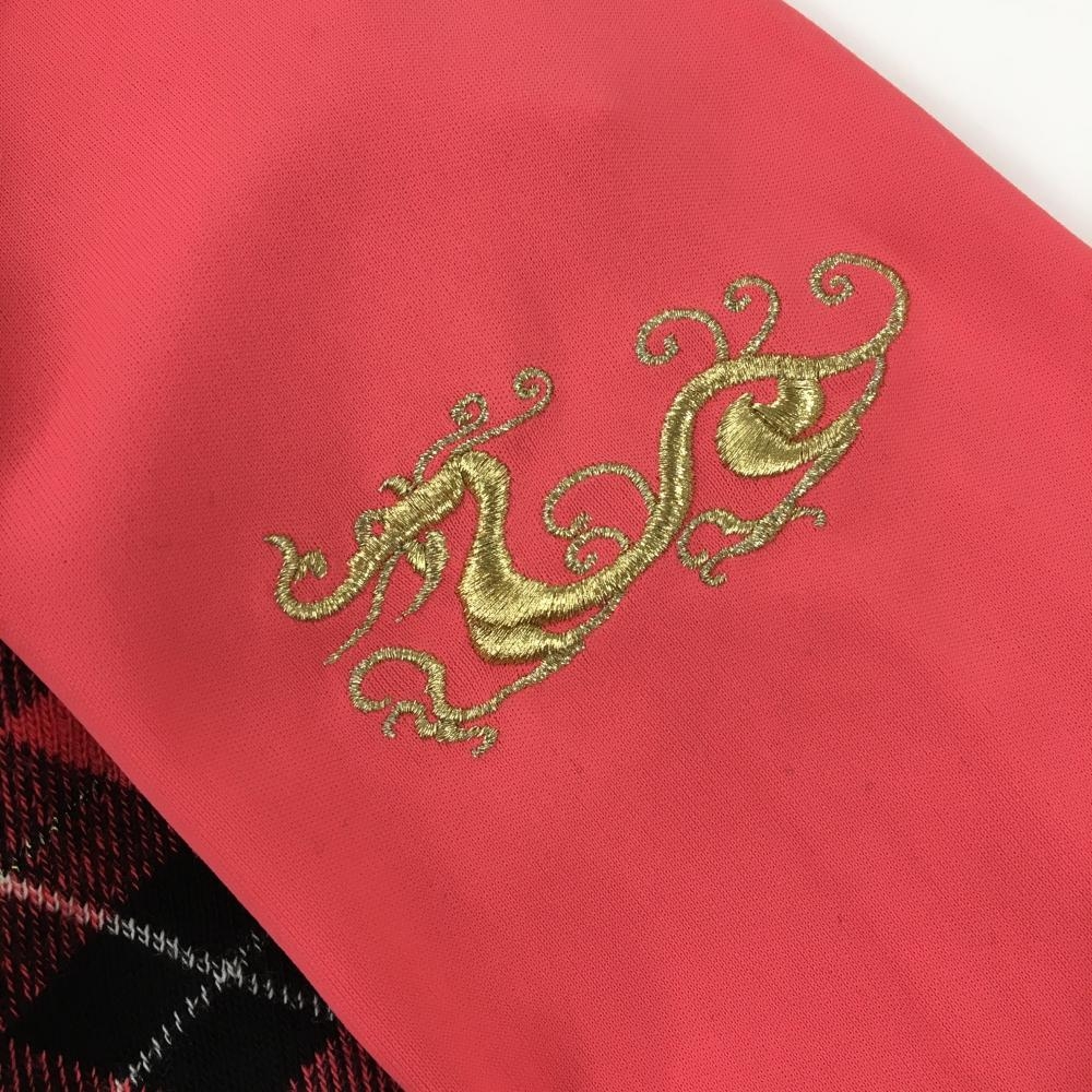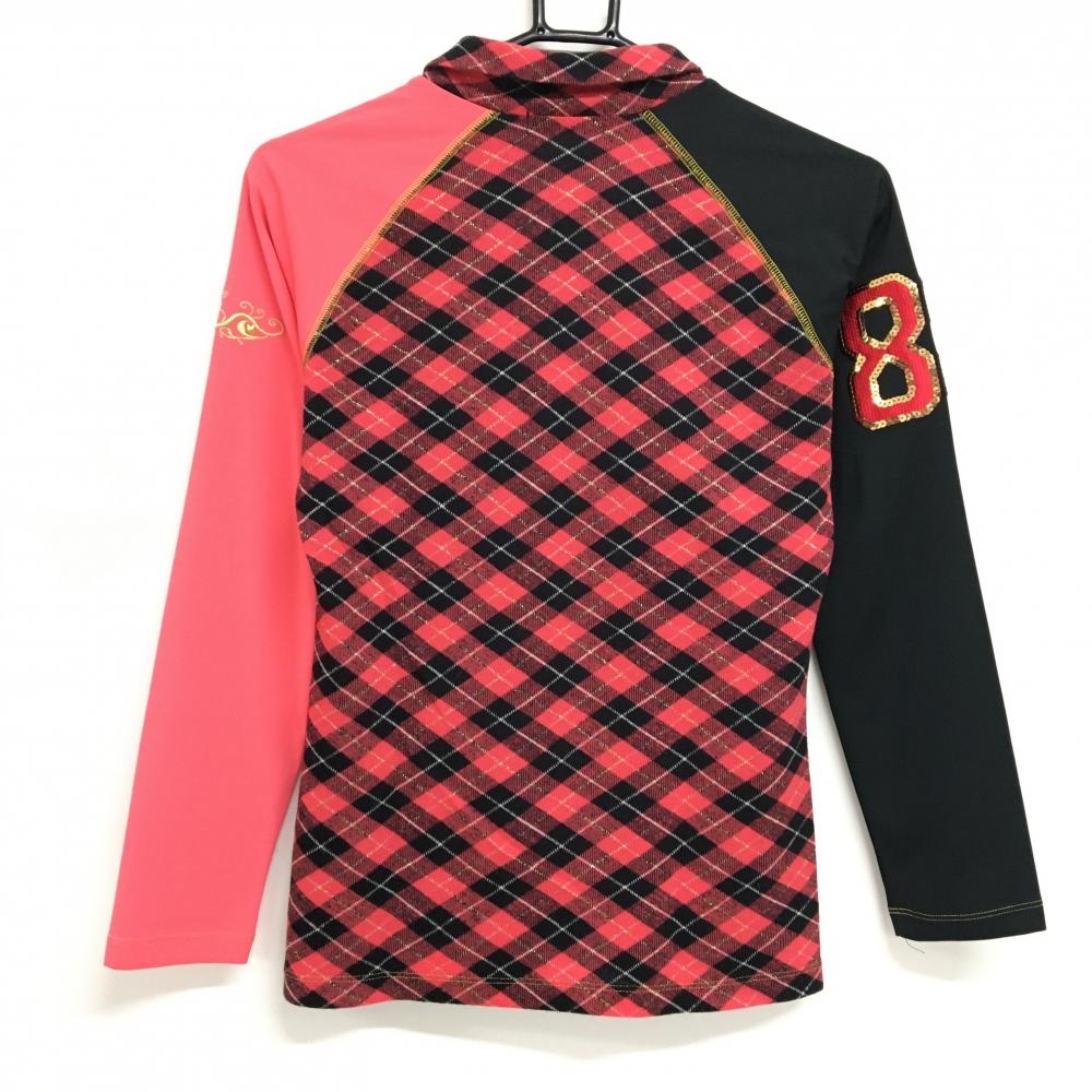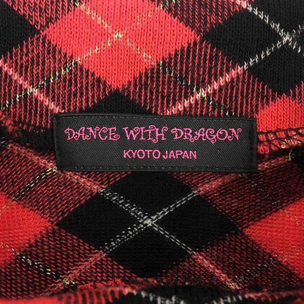 【超美品】ダンスウィズドラゴン 襟付き長袖シャツ ピンク×黒 身頃チェック・ウール混 レディース 2(M) ゴルフウェア Dance With Dragon