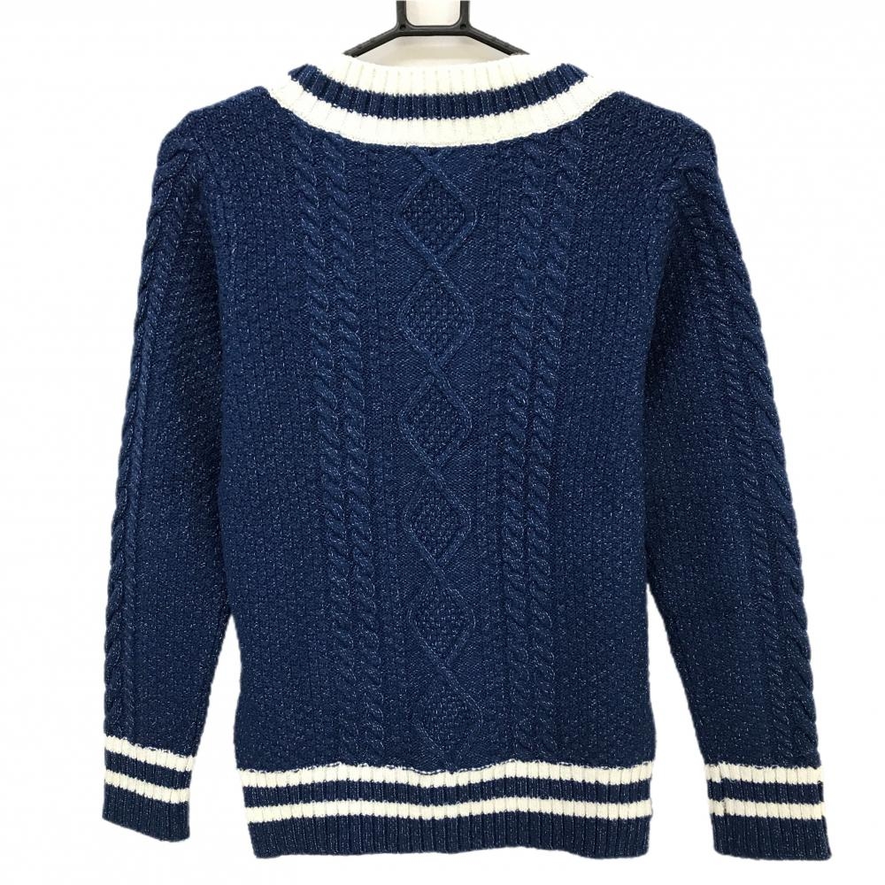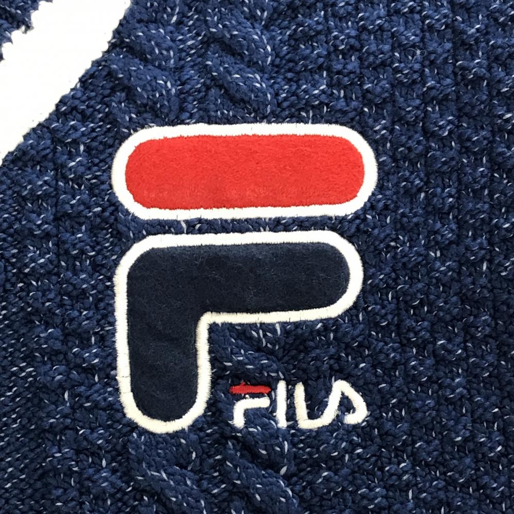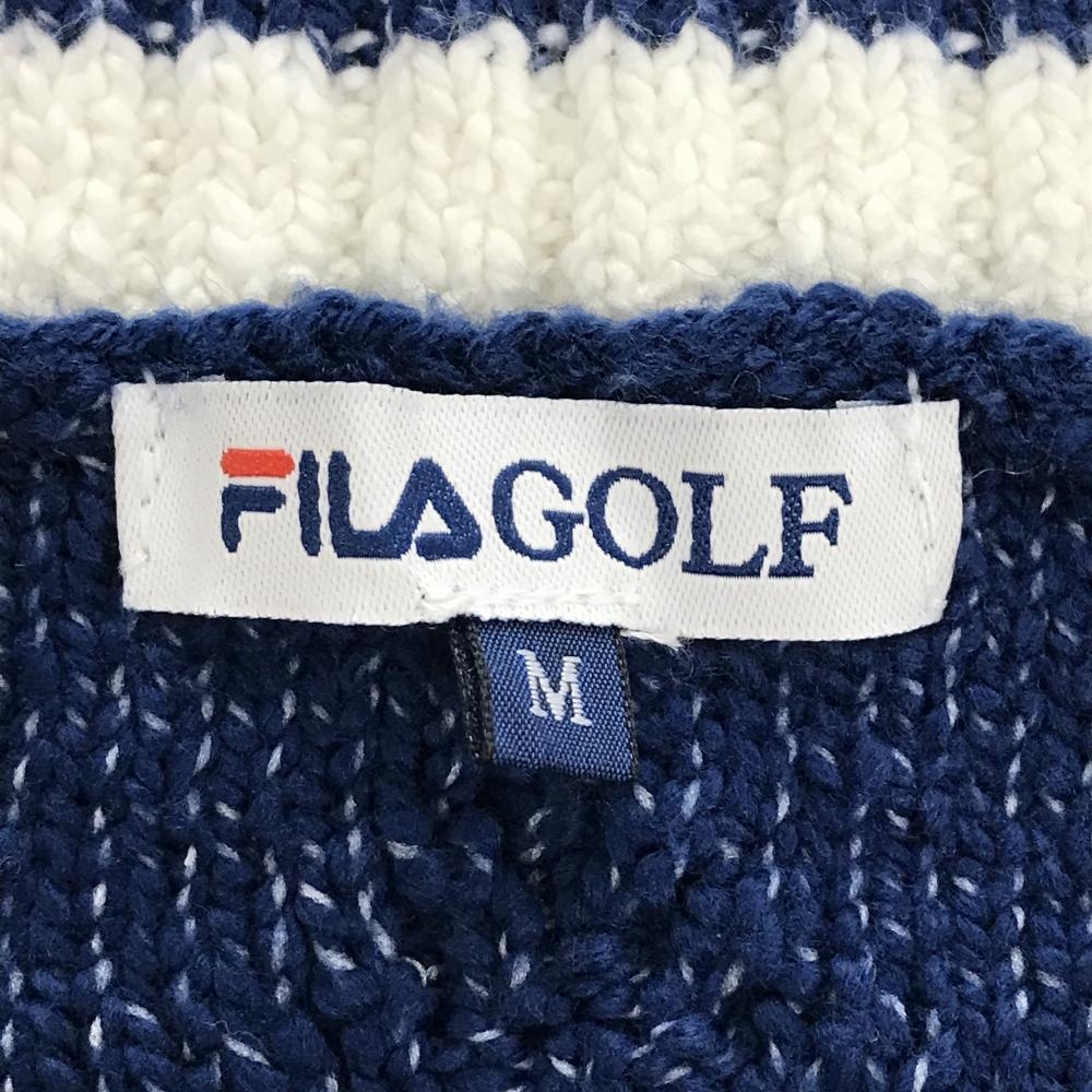 フィラゴルフ セーター ネイビー×白 ケーブル編み Vネック ロゴ刺しゅう ニット レディース M ゴルフウェア FILA GOLF