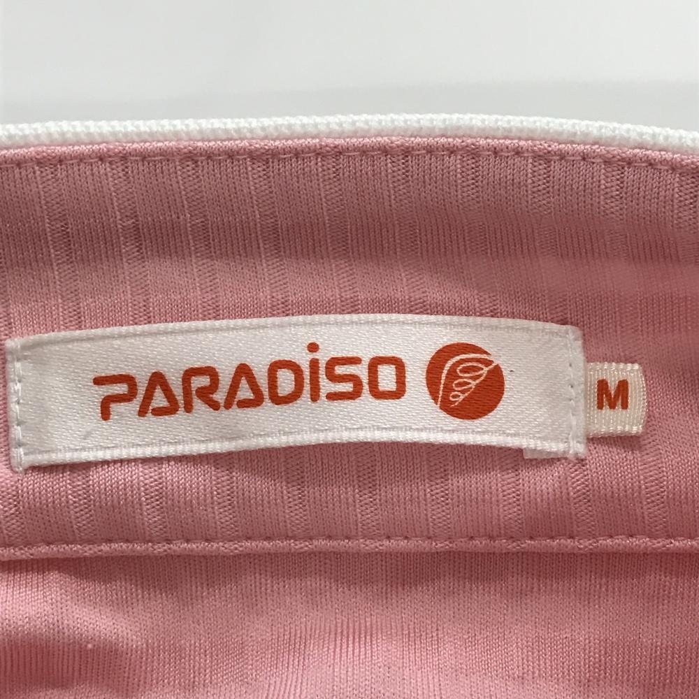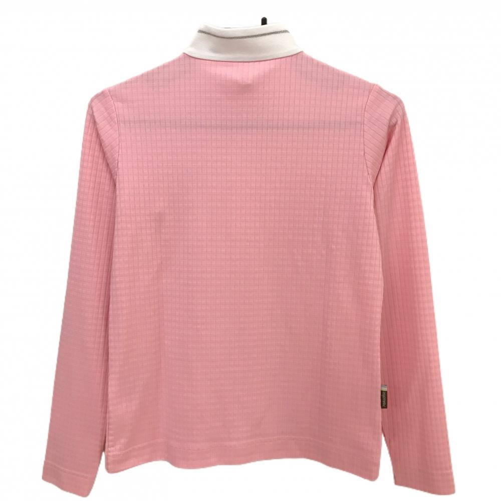 パラディーゾ 長袖ハイネックシャツ ピンク×白 ハーフジップ チェック織生地 刺しゅう ネックライン レディース M ゴルフウェア Paradiso