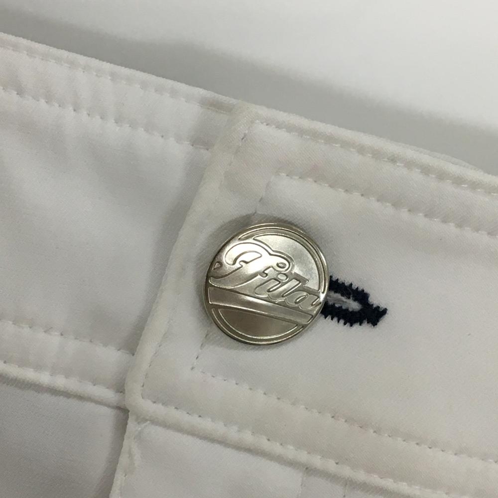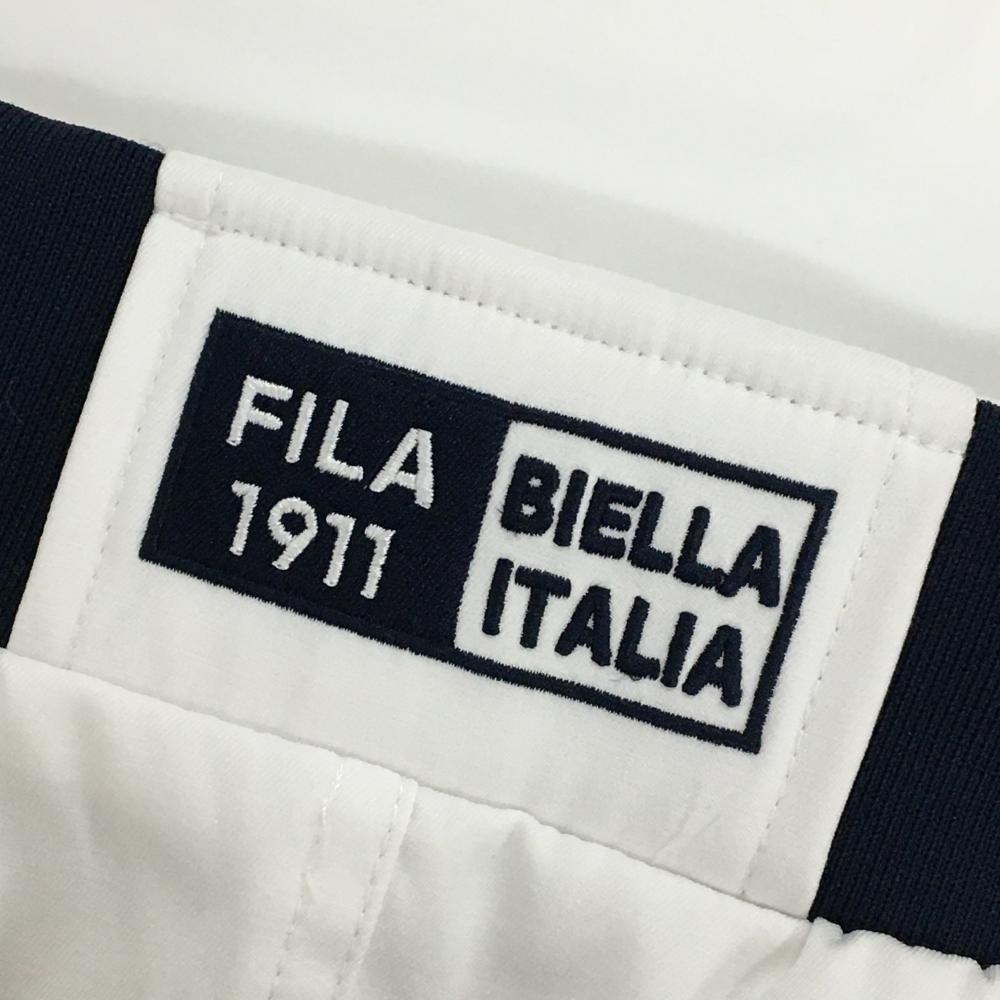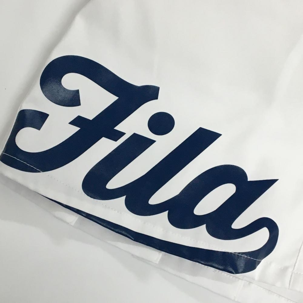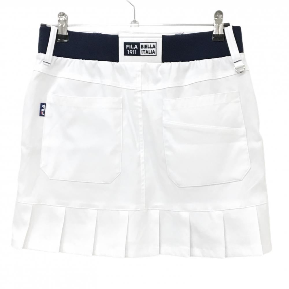 【美品】フィラゴルフ スカート 白×ネイビー 後ろ裾プリーツ ロゴプリント レディース L ゴルフウェア FILA GOLF