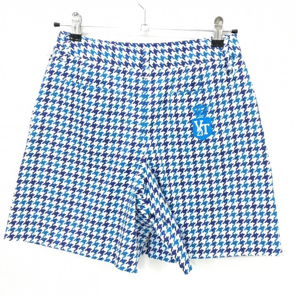 23区ゴルフ キュロットスカート 白×ブルー 千鳥格子 刺しゅう レディース 61(S) ゴルフウェア 23区