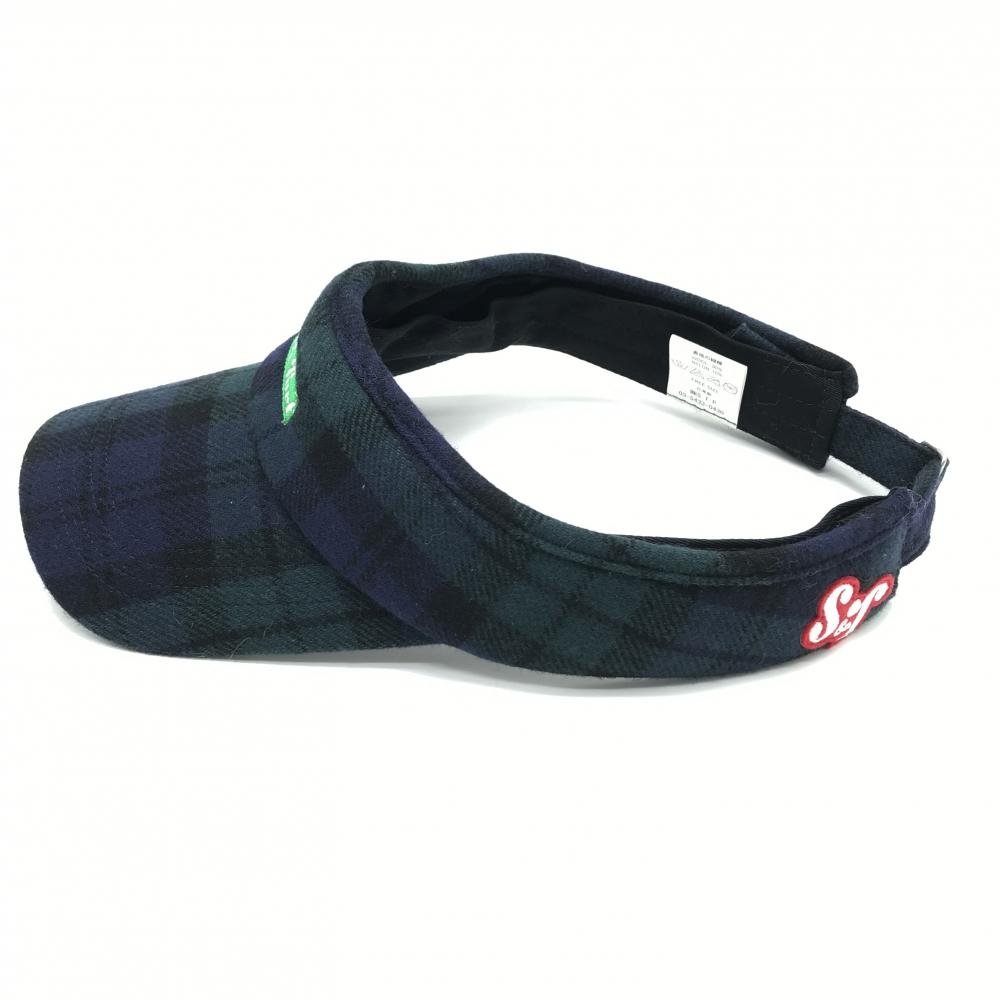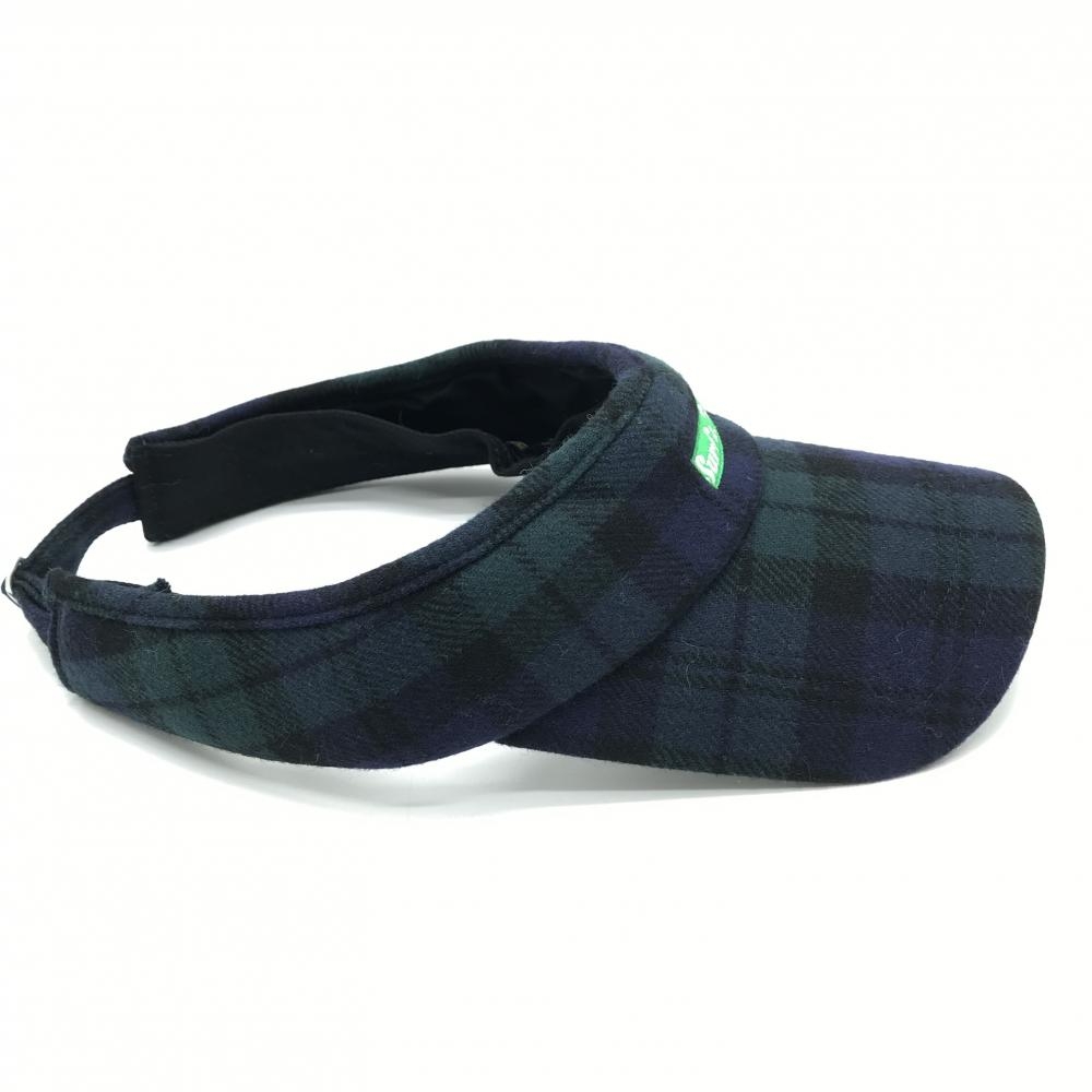 【超美品】サーフアンドターフ サンバイザー ネイビー×グリーン チェック ウール混 FREE SIZE ゴルフウェア surf&turf