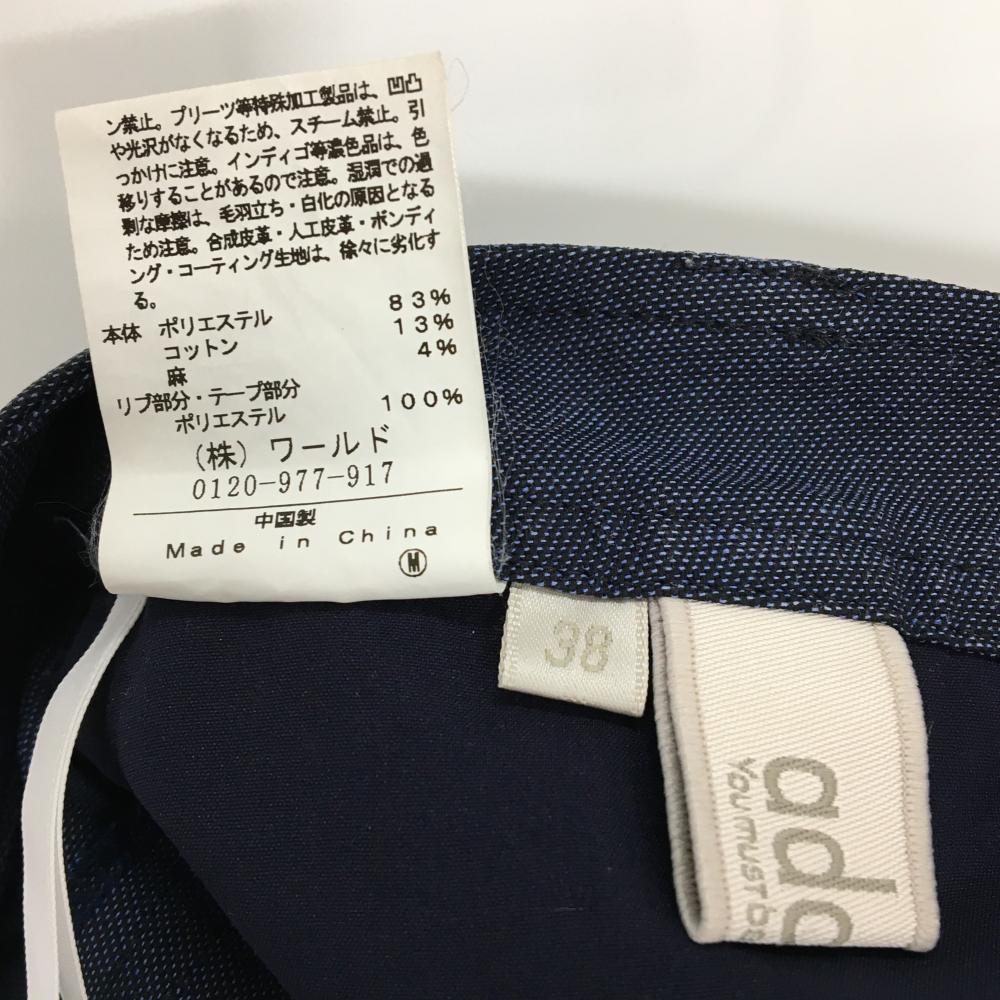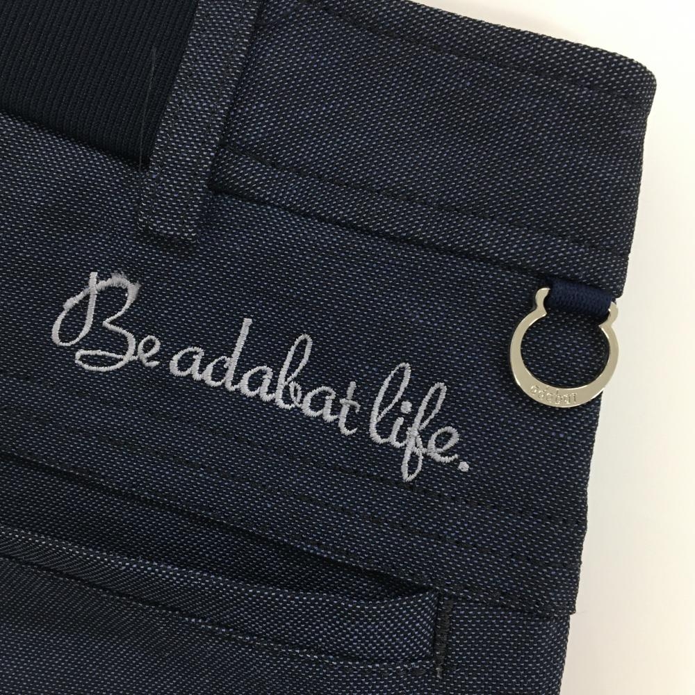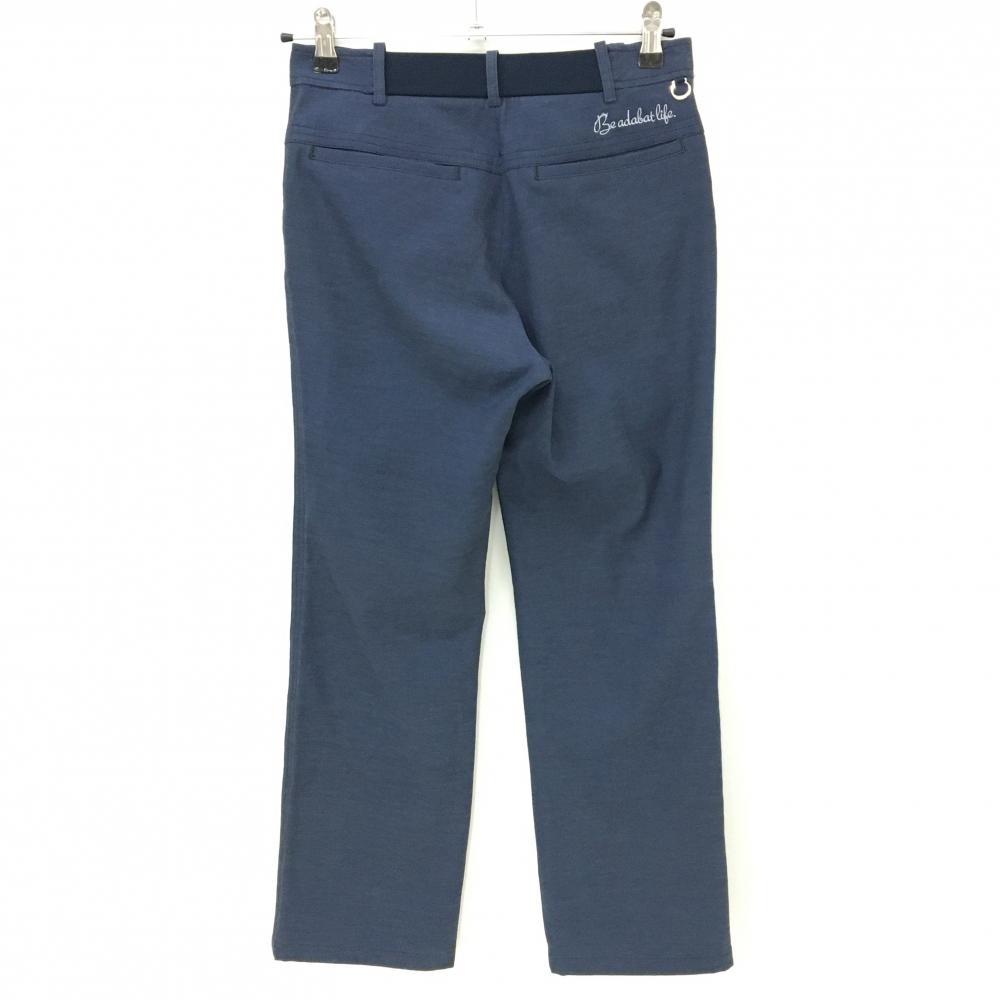 【美品】アダバット パンツ 杢ネイビー 後ろ刺しゅう レディース 38(M) ゴルフウェア adabat