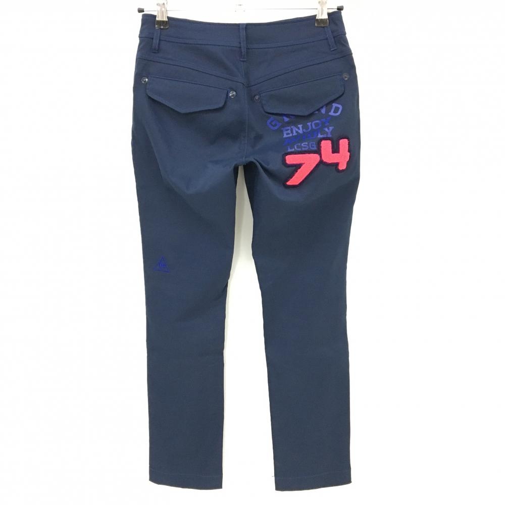【超美品】ルコックゴルフ パンツ ネイビー ストレッチ さがら刺しゅうワッペン レディース 7 ゴルフウェア le coq sportif