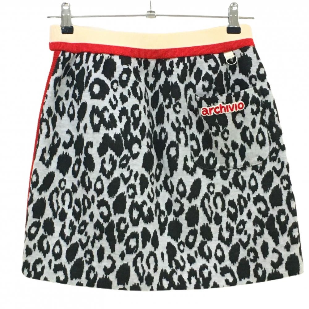 【美品】アルチビオ スカート 黒×白×レッド レオパード柄 裏地付 レディース 38(M) ゴルフウェア archivio