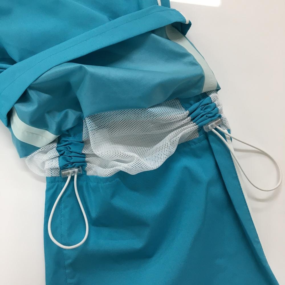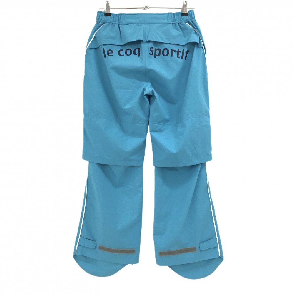 【超美品】ルコックゴルフ レインパンツ ライトブルー×白 サイドライン 裾ジップ レディース M ゴルフウェア le coq sportif