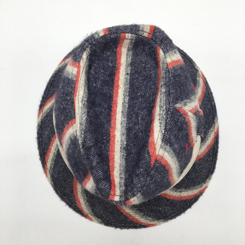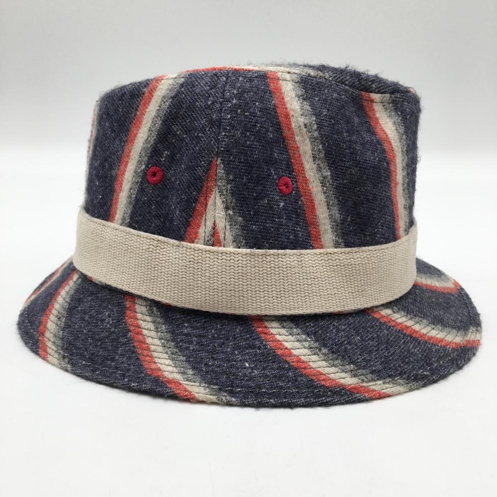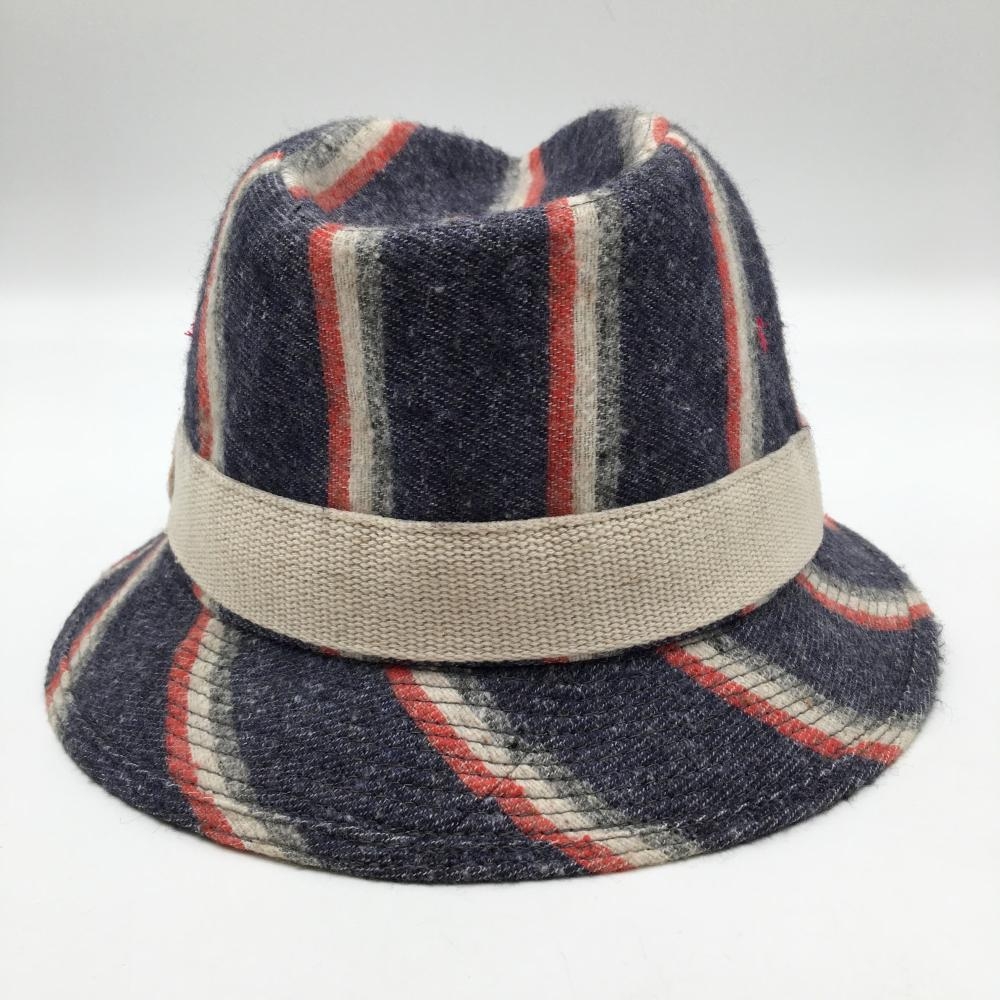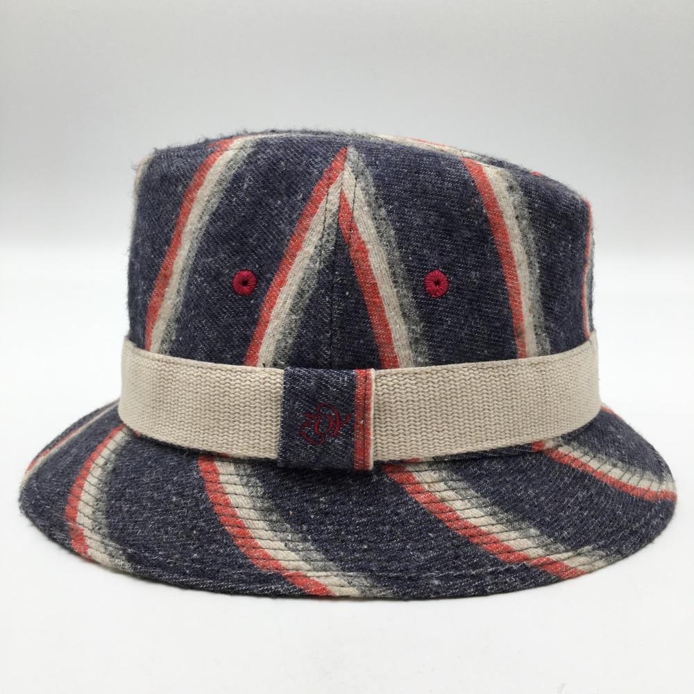 【美品】ゾーイ 中折れハット ネイビー×白 ストライプ調 F ゴルフウェア ZOY