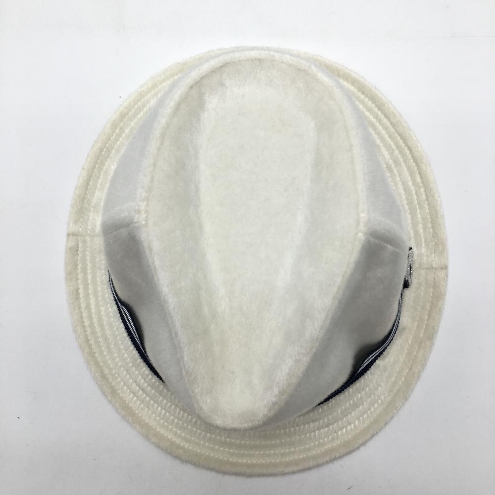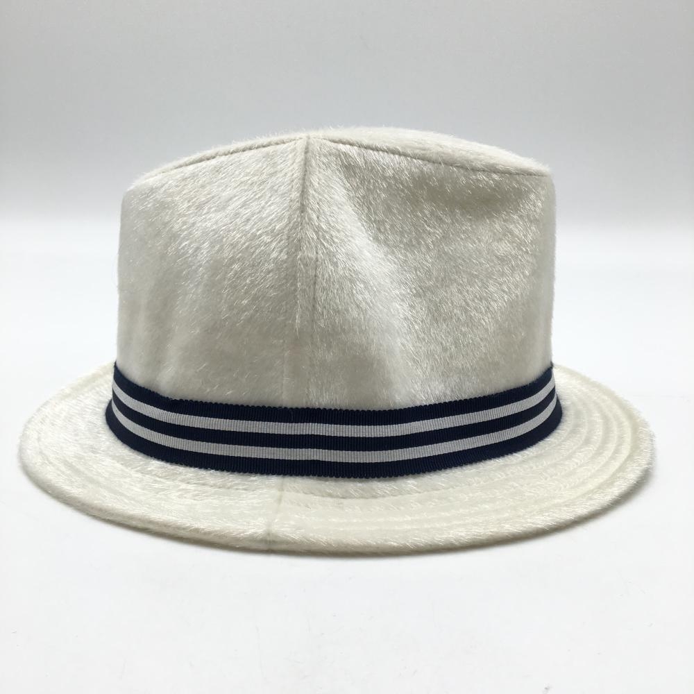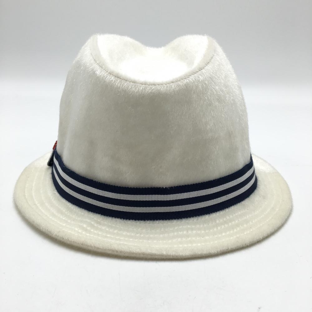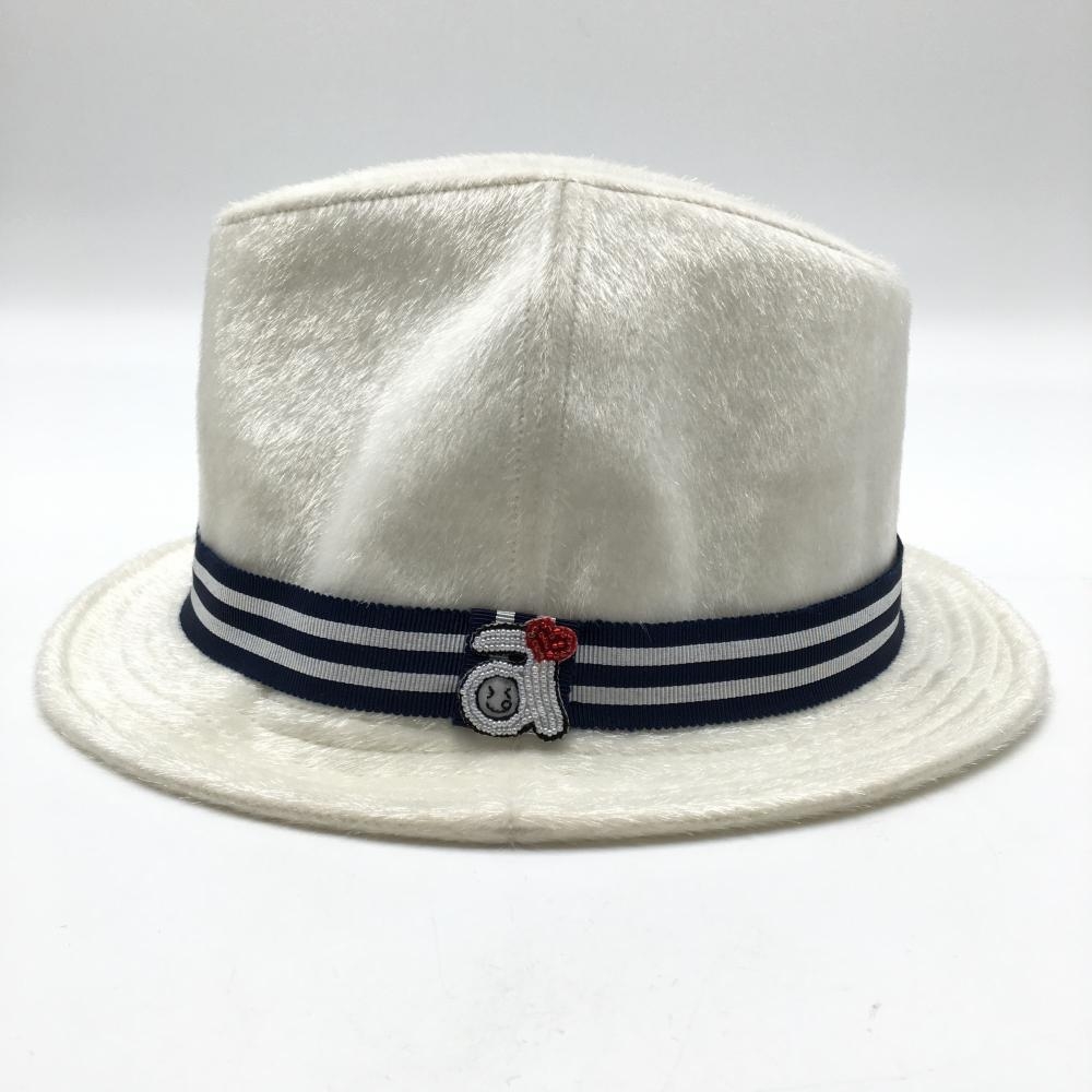 【美品】アルチビオ 中折れハット 白 ベロア調 リボンボーダー ナイロン レディース ゴルフウェア archivio