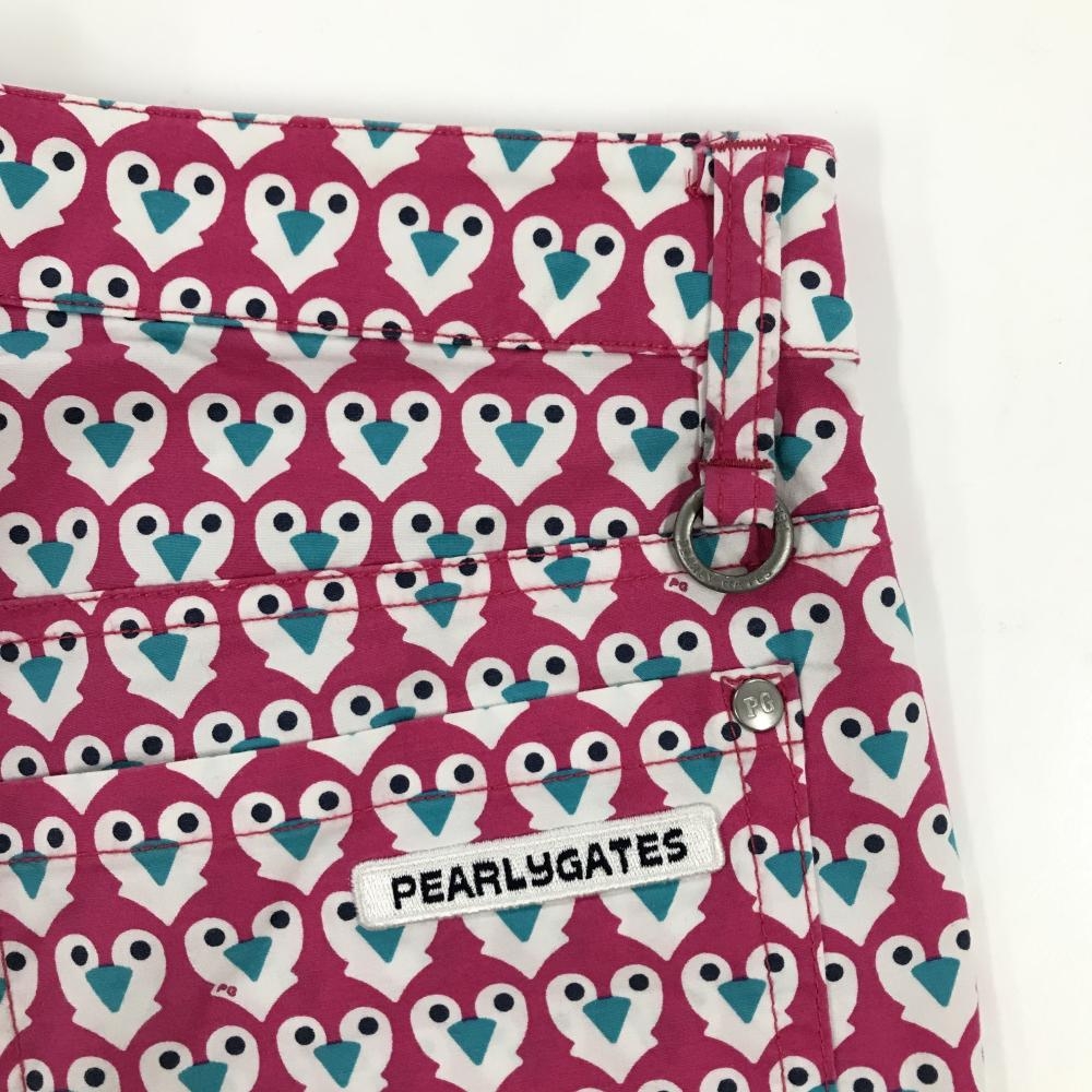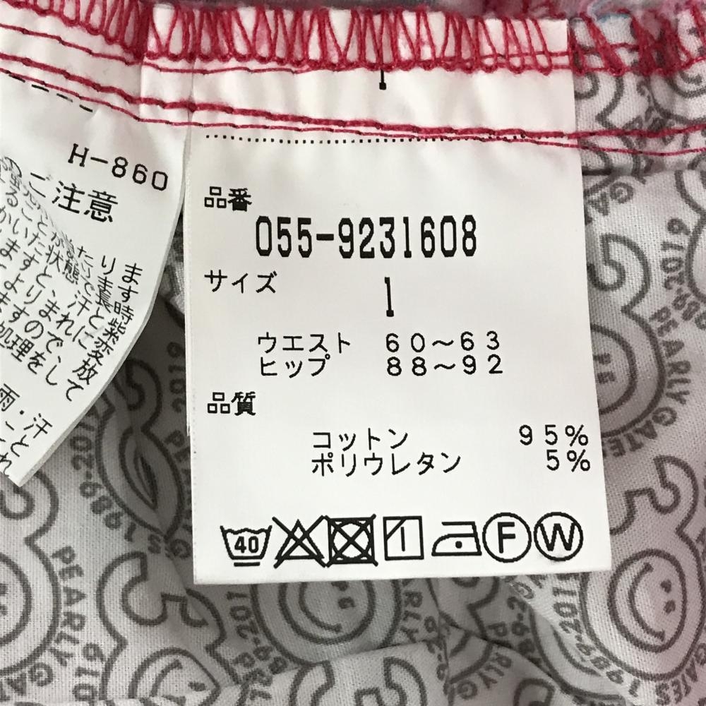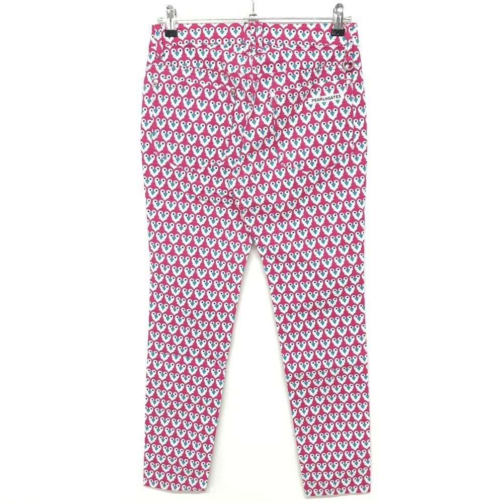 【美品】パーリーゲイツ パンツ ピンク×白 総柄 内側30周年 ストレッチ レディース 1(M) ゴルフウェア PEARLY GATES