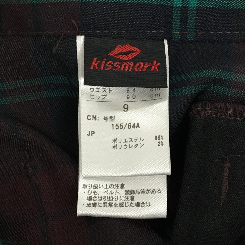 【超美品】キスマーク スカート ボルドー×グリーン チェック 裾プリーツ レディース 9 ゴルフウェア kissmark