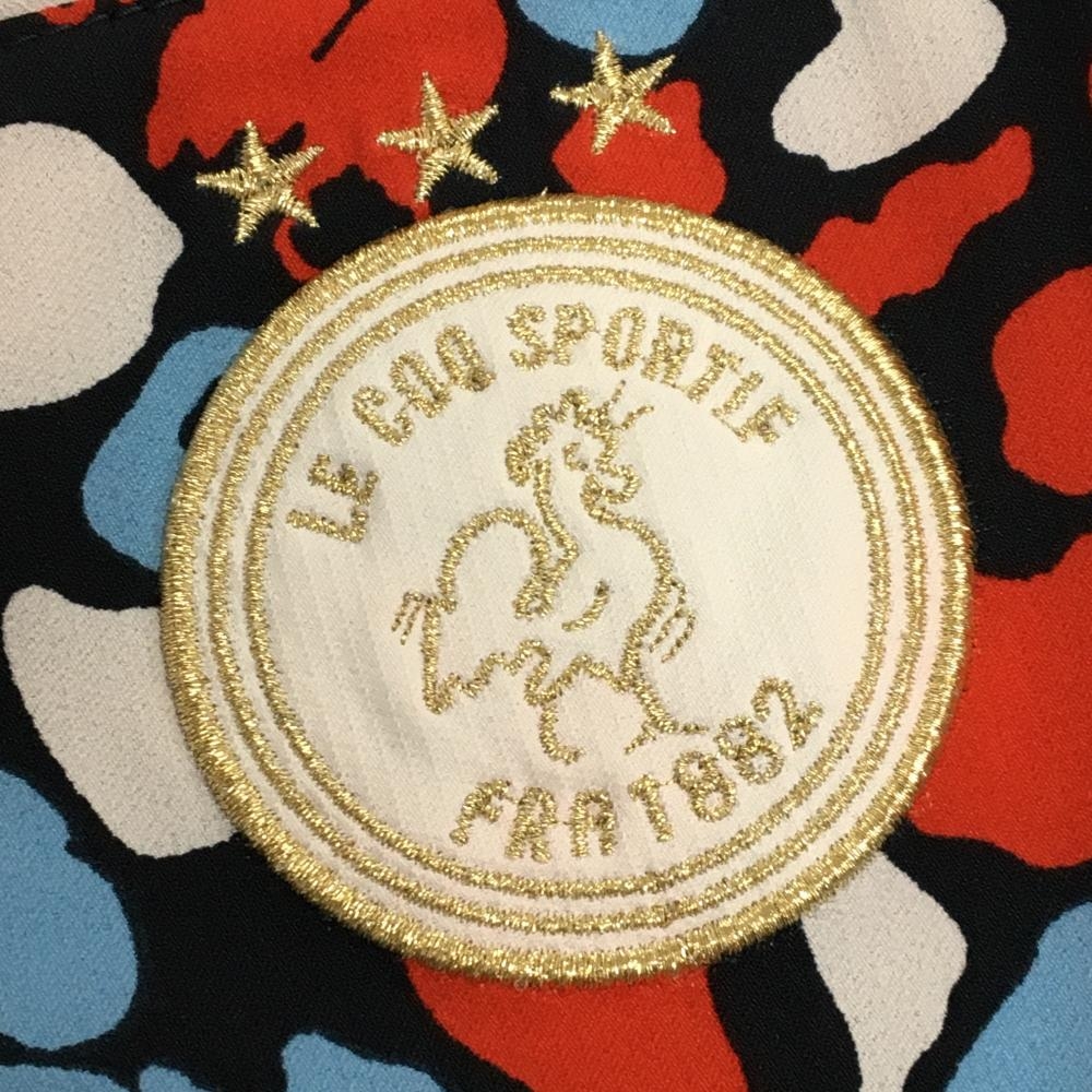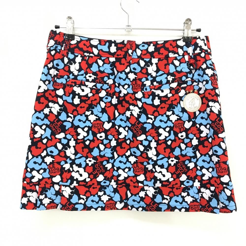 【超美品】ルコックゴルフ スカート ネイビー×レッド×ライトブルー 総柄 レディース LL ゴルフウェア 2024年モデル le coq sportif