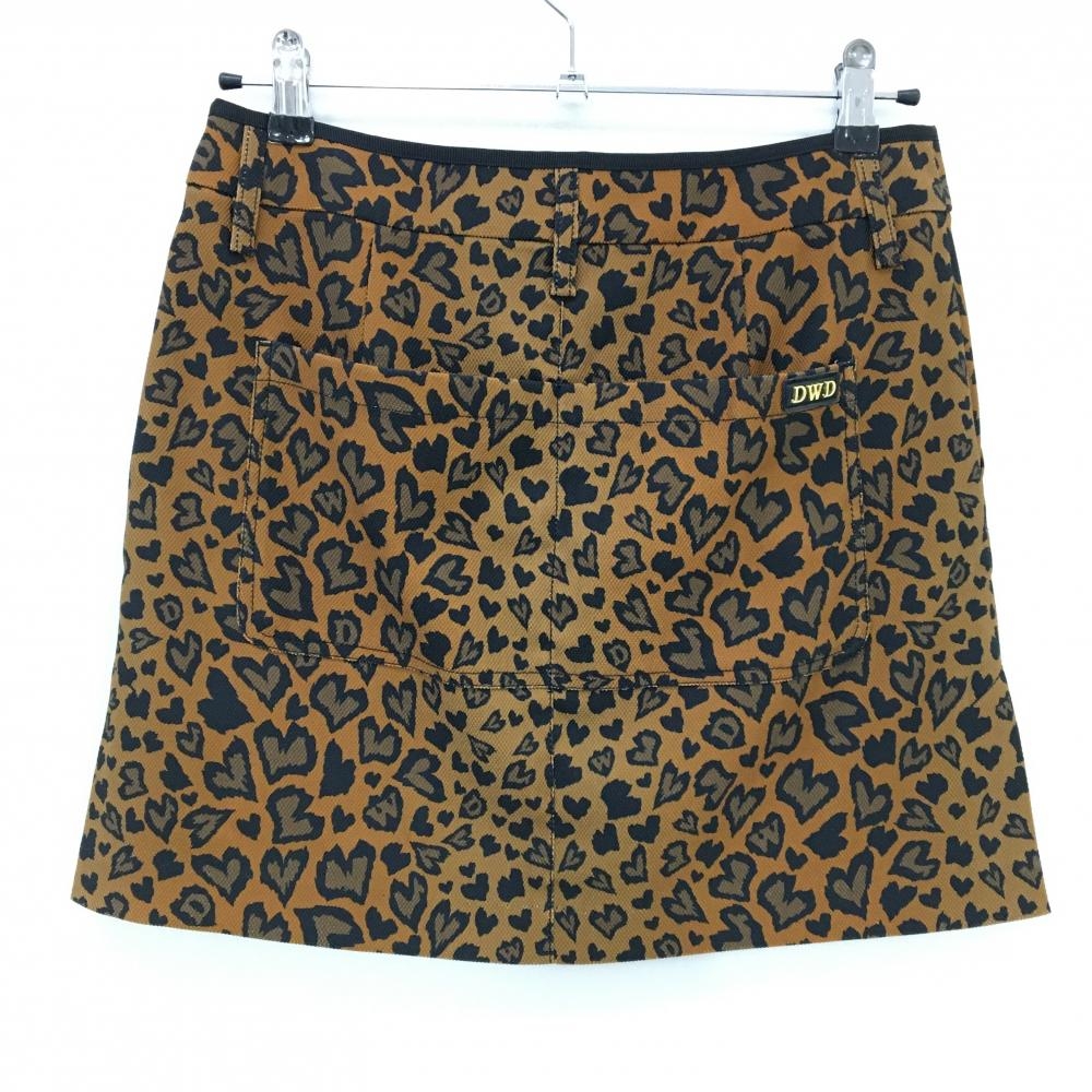 【超美品】ダンスウィズドラゴン スカート ブラウン×黒 レオパード風 ハート レディース 3(L) ゴルフウェア Dance With Dragon